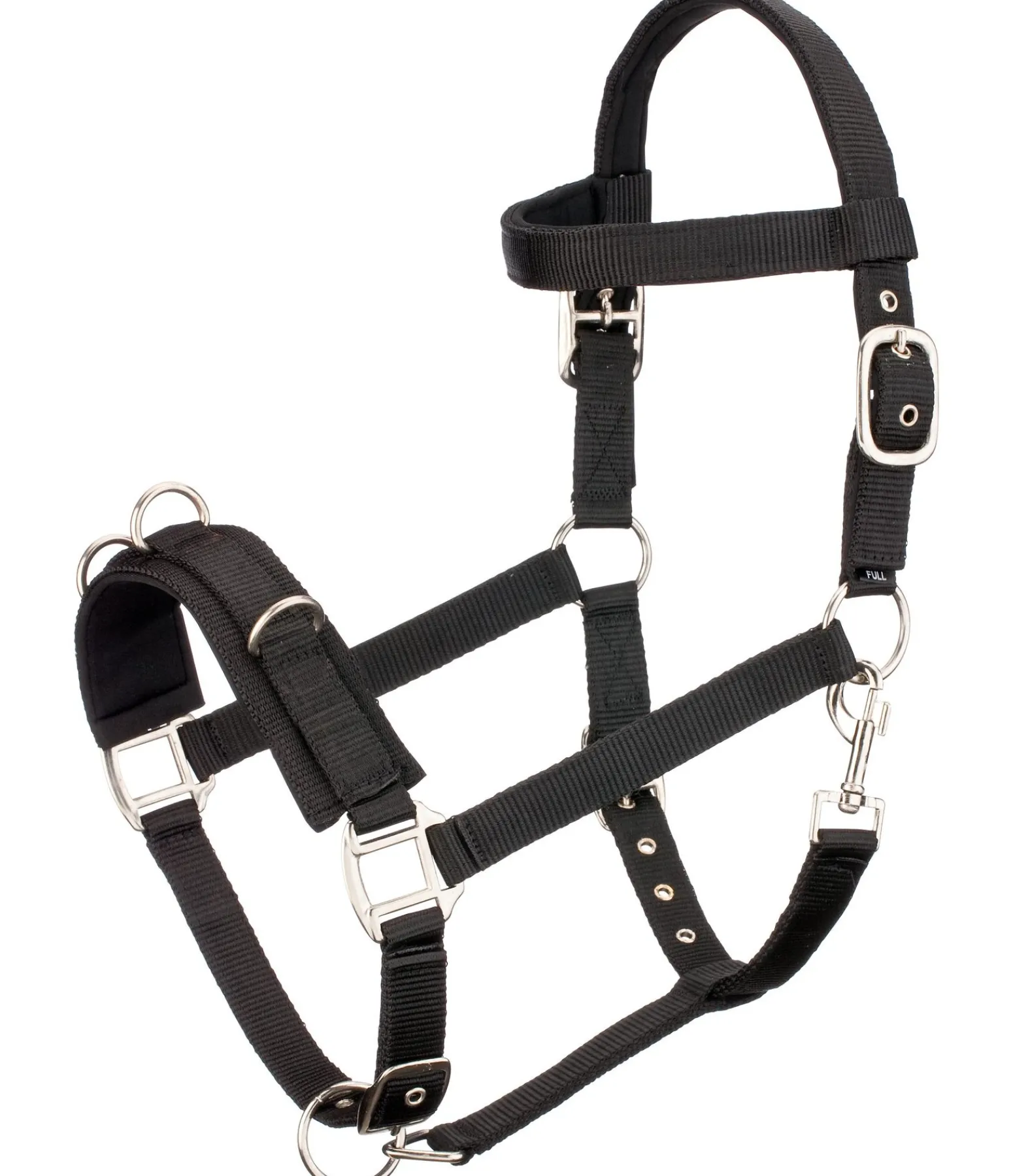 Utilisable comme licol, bridon sans embouchure ou caveçon pour longer. Réglages multiples et rembourrage doux.