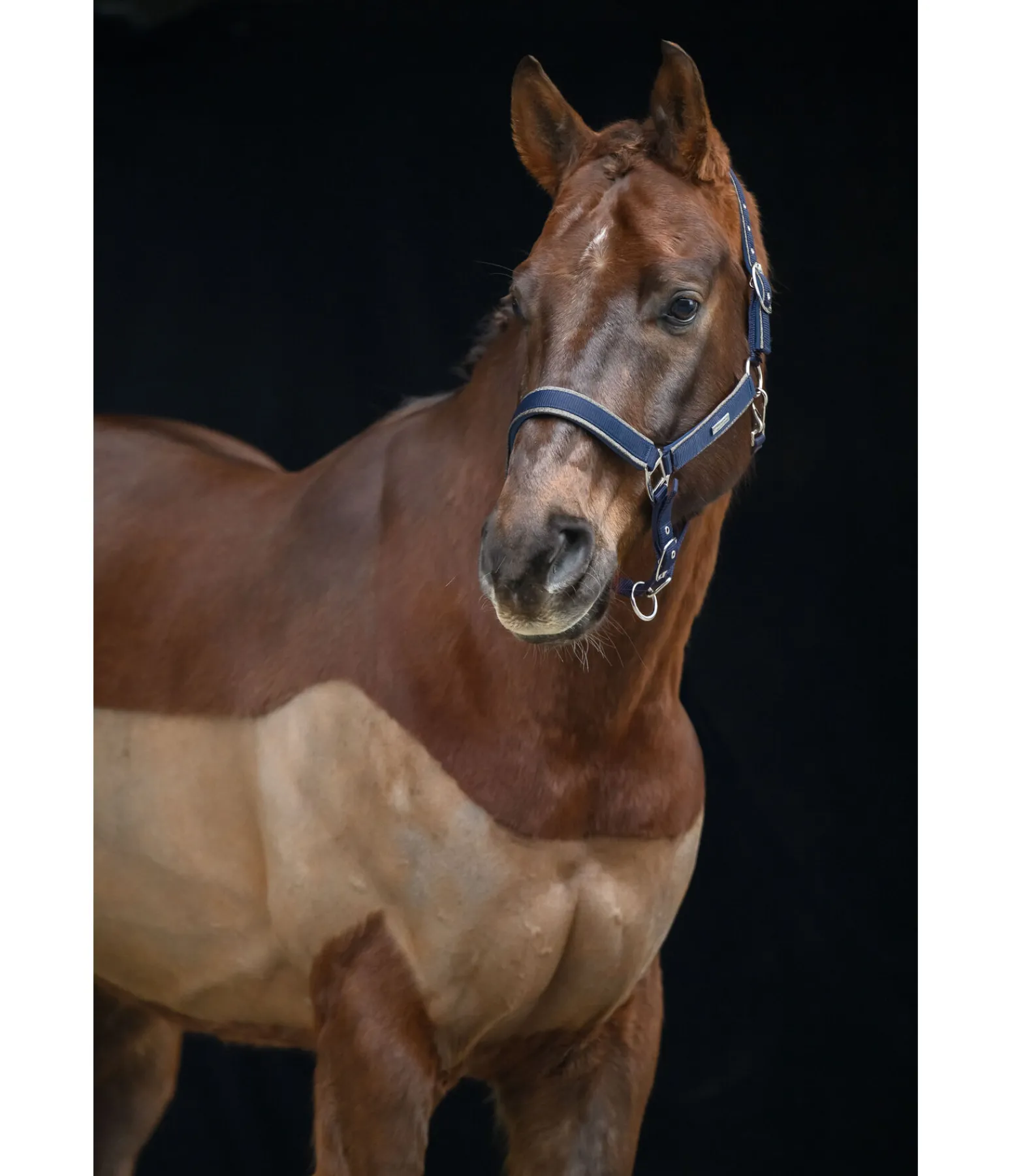 Licol chic avec passepoil scintillant et bouclerie de couleur assortie. Têtière, muserolle et montants avec doublure douce en caoutchouc chloroprène pour un confort maximal. Plaque métallique discrète avec logo gravé sur le montant gauche. Têtière et muserolle réglables. 100 % polypropylène.