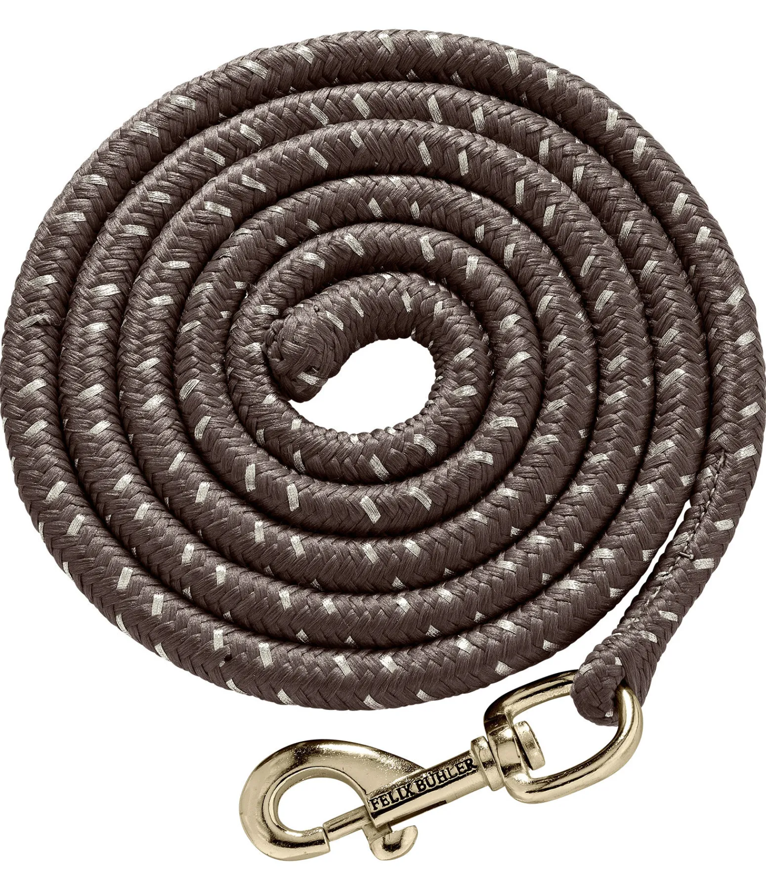 Longe ronde avec tressage serré, fil scintillant et mousqueton de couleur assortie. Parfaitement assortie au licol 310047. 2 m. 100 % polyester.