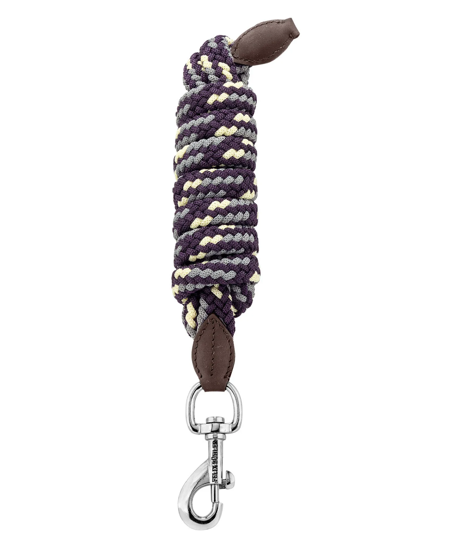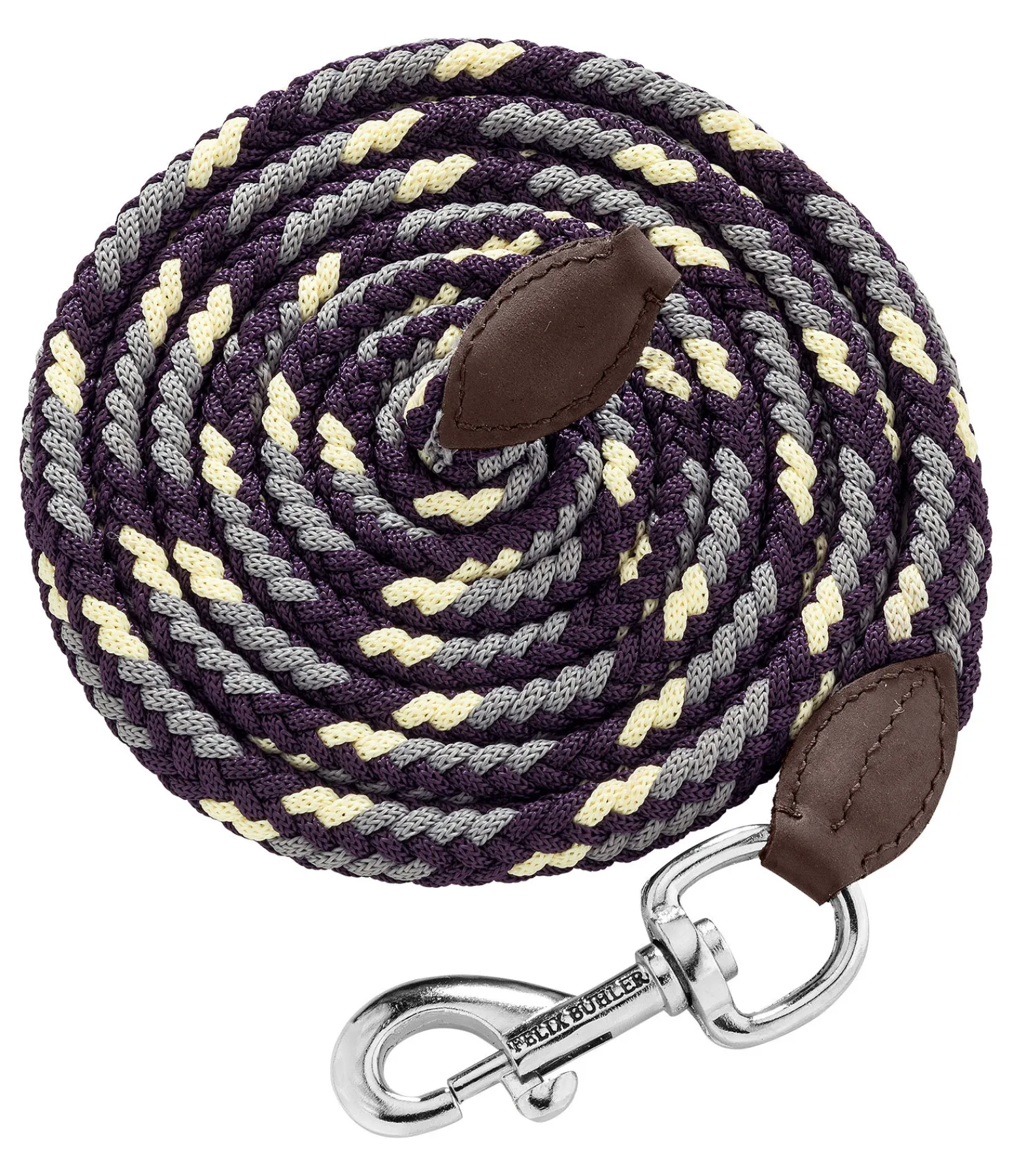 Longe tressée ronde très résistante avec élégants embouts en cuir et mousqueton. Assortie au licol 310040. Bouclerie argentée. 2 m. 100 % polypropylène.