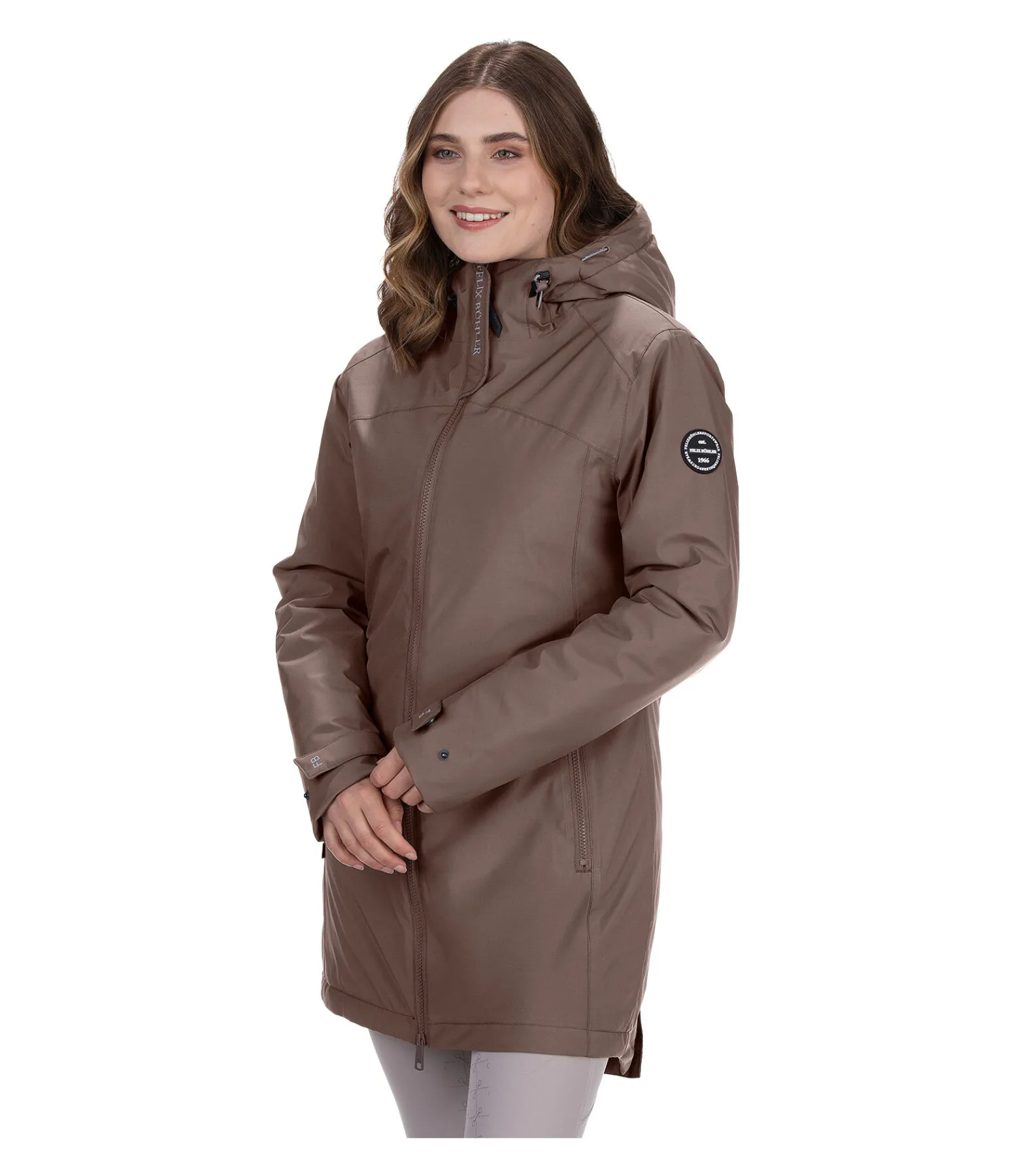 Manteau d’équitation technique avec garnissage chaud en imitation duvet et capuche. Imperméable (10.000 mm), coupe-vent et respirant. Fermeture à glissière double sens avec sous-patte, 2 poches zippées devant, 1 poche intérieure zippée, bas des manches réglables, col haut avec capuche rembourrée réglable. 2 fentes cavalières zippées à l’arrière. Badge Felix Bühler sur la manche et imprimé réfléchissant Felix Bühler sur le col. 100 % polyester.