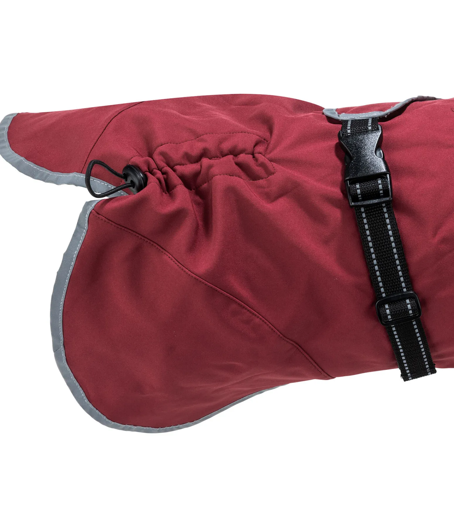 Manteau pour chien particulièrement léger, déperlant et respirant (100 deniers) en matière softshell coupe-vent. La doublure polaire molletonnée maintient au chaud. Facile à fermer grâce à une fermeture à clip sur le rabat ventral. Coupe sportive avec un grand pli d’aisance supplémentaire au poitrail pour une liberté de mouvement maximale. Convient également pour l’entraînement ou les activités d’endurance. Passepoil réfléchissant sur le pourtour pour plus de visibilité sur la route. Écusson logo également réfléchissant. Col douillet et généreux en polaire douce aspect chiné. Longueur de dos réglable par un élastique afin d’être parfaitement ajusté même avec une queue haute. Avec passage de harnais zippé étanche et courroies de cuisses élastiques. 100 % polyester.