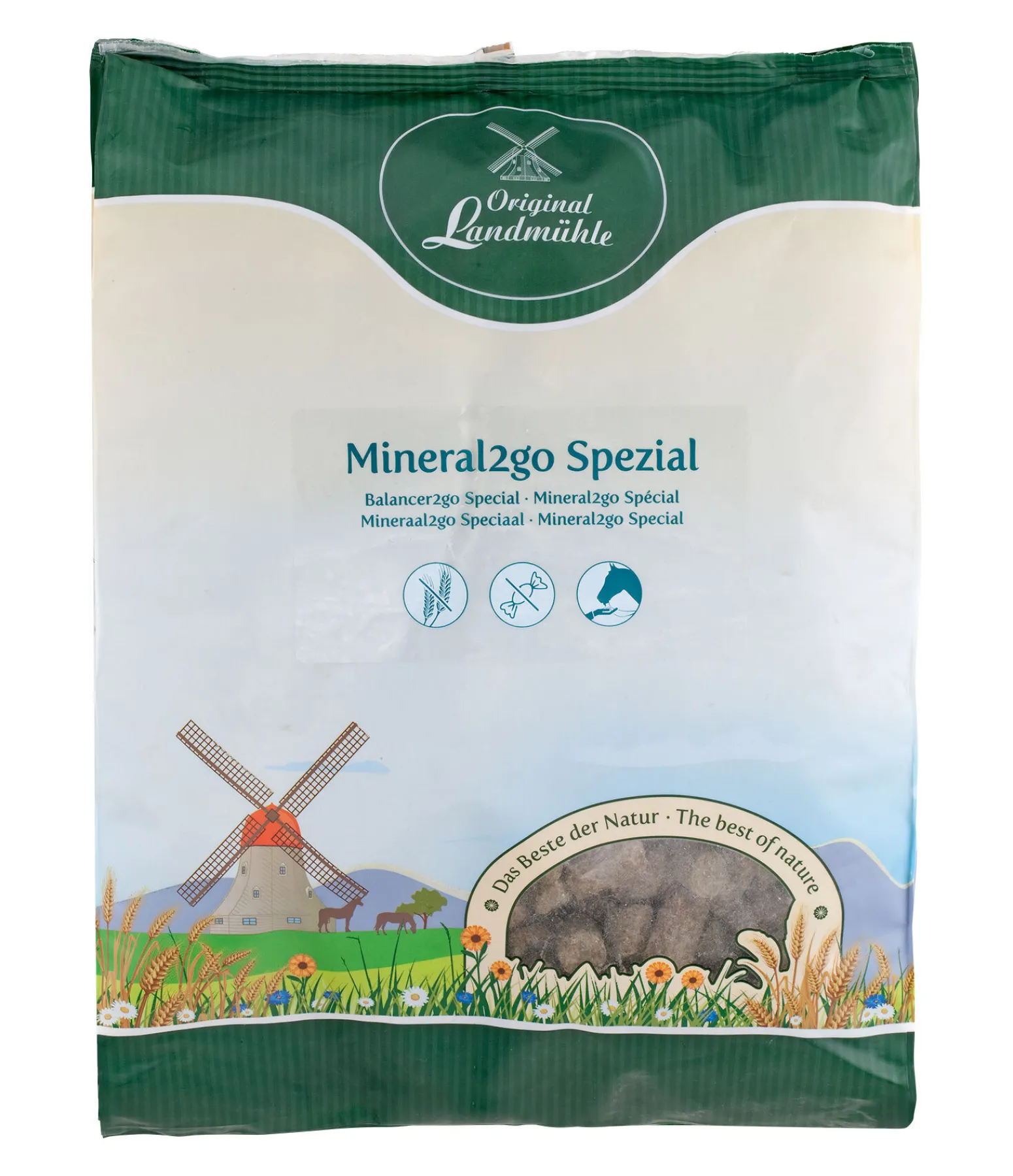 Complément minéral sans céréales, déjà portionné, idéal pour les chevaux en troupeau. Pauvre en amidon et en sucre, convient aux chevaux allergiques. Correspond de manière optimale aux races spéciales et robustes ayant de faibles besoins énergétiques et un besoin accru en oligo-éléments et minéraux. Contient un mélange d’herbes de grande qualité. Facile à donner à la main comme une friandise.