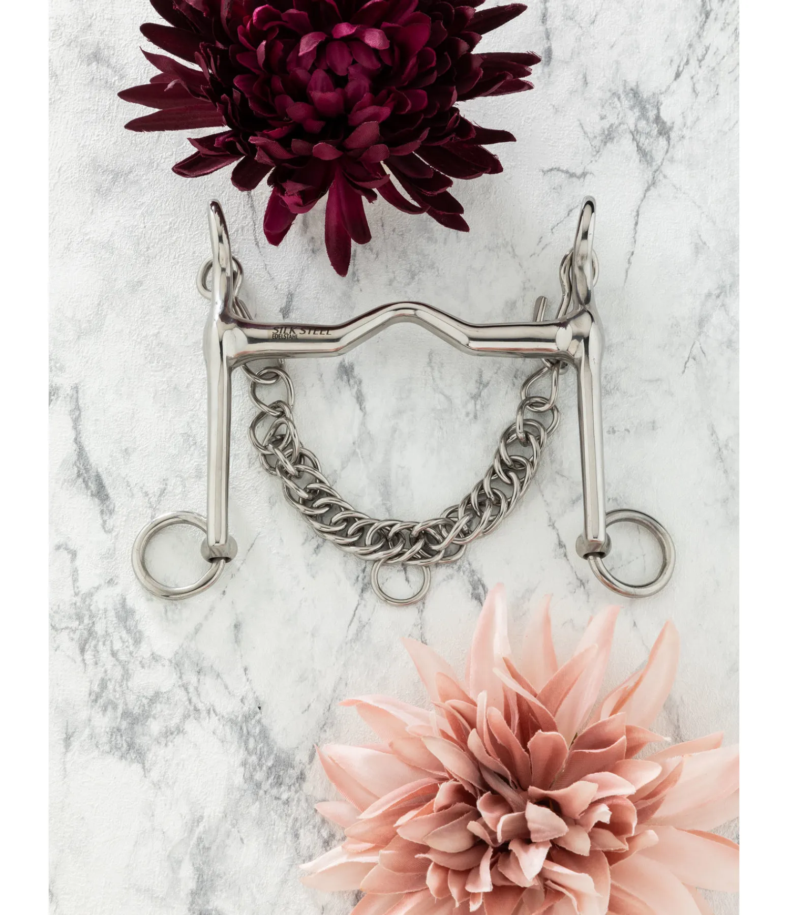Acier inoxydable, canons pleins, épaisseur 14 mm. Léger passage de langue, fourni avec gourmette.