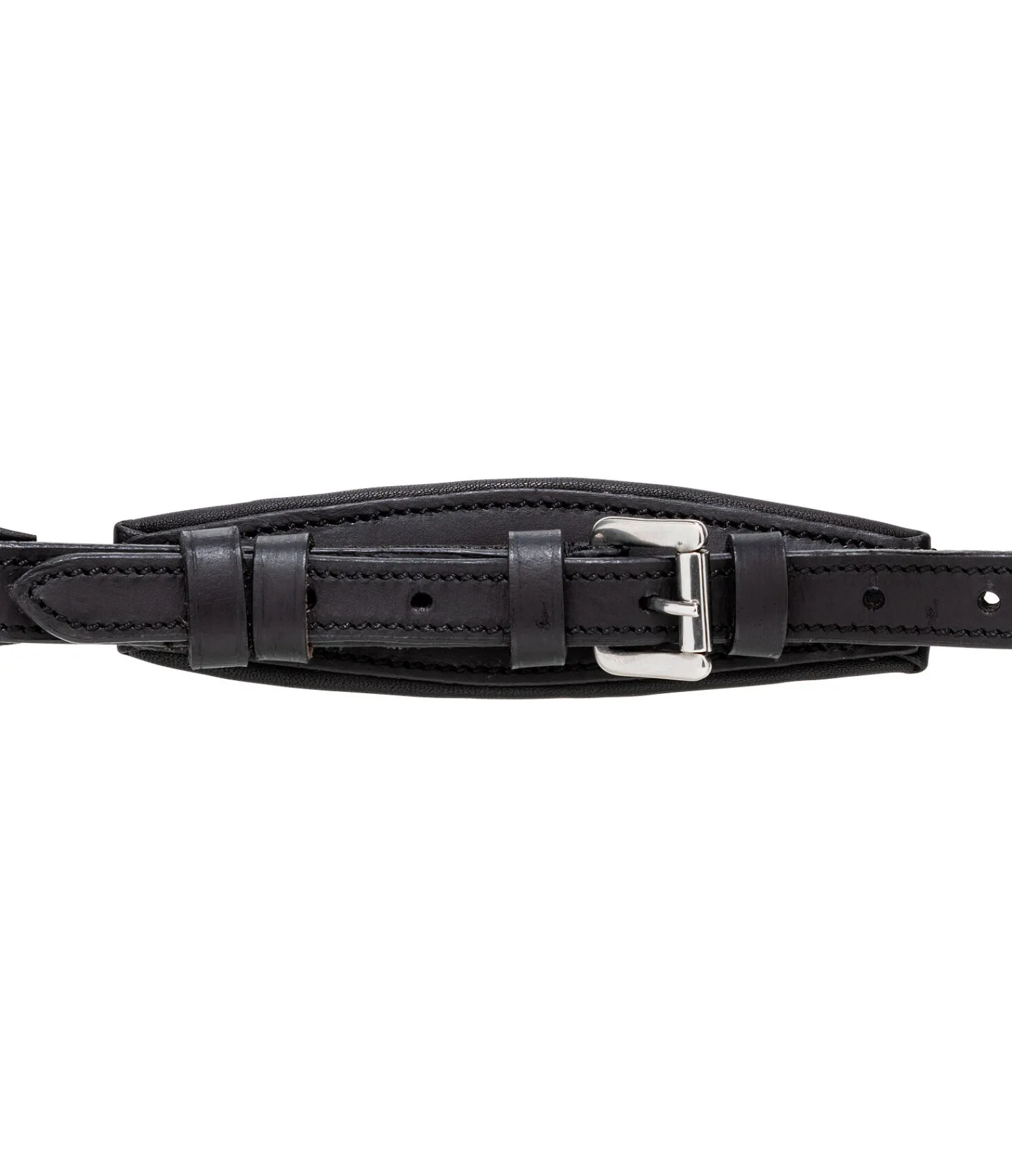 Muserolle combinant les effets d’une muserolle française et d’une muserolle allemande. Les anneaux de fixation latéraux du noseband permettent d’éviter les pressions sur l’os du nez, facilitent la fermeture et offrent davantage de liberté aux naseaux. Pad de menton et muserolle avec doublure épaisse. Cuir gras véritable de qualité, particulièrement souple. Bouclerie argentée. Parfaitement assortie aux autres articles de la série CLARIDGE HOUSE Mix & Match PRO. En combinant les articles de la série CLARIDGE HOUSE Mix & Match PRO, vous pouvez créer le bridon de vos rêves.