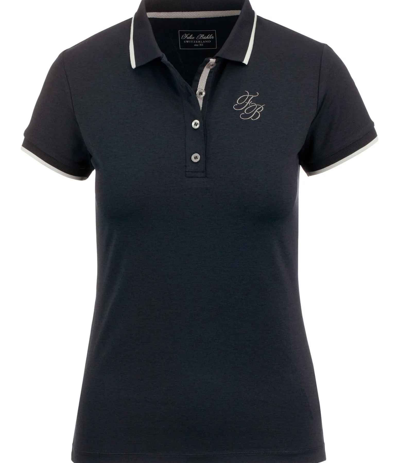 Polo d’équitation technique. Modèle classique à manches courtes en jersey extensible. Aspect chiné. Bord-côte avec liseré de couleur contrastante sur le col et le bas des manches. Patte de boutonnage. Logo brodé Felix Bühler sur la poitrine. Matière respirante à séchage rapide. 92 % polyester, 8 % élasthanne