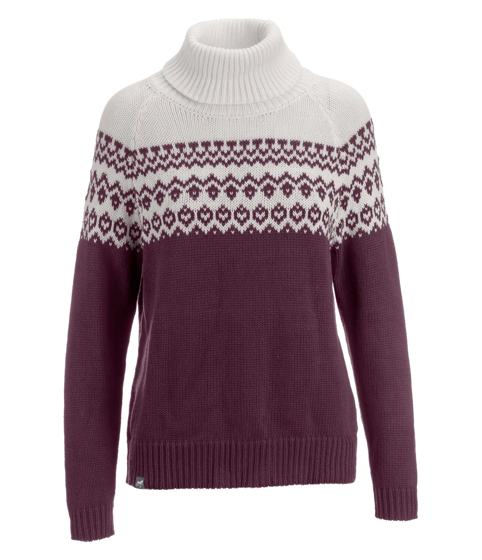 Pull-over confortable à coupe ample avec col roulé et motif nordique. 53 % coton, 40 % viscose, 7 % nylon.