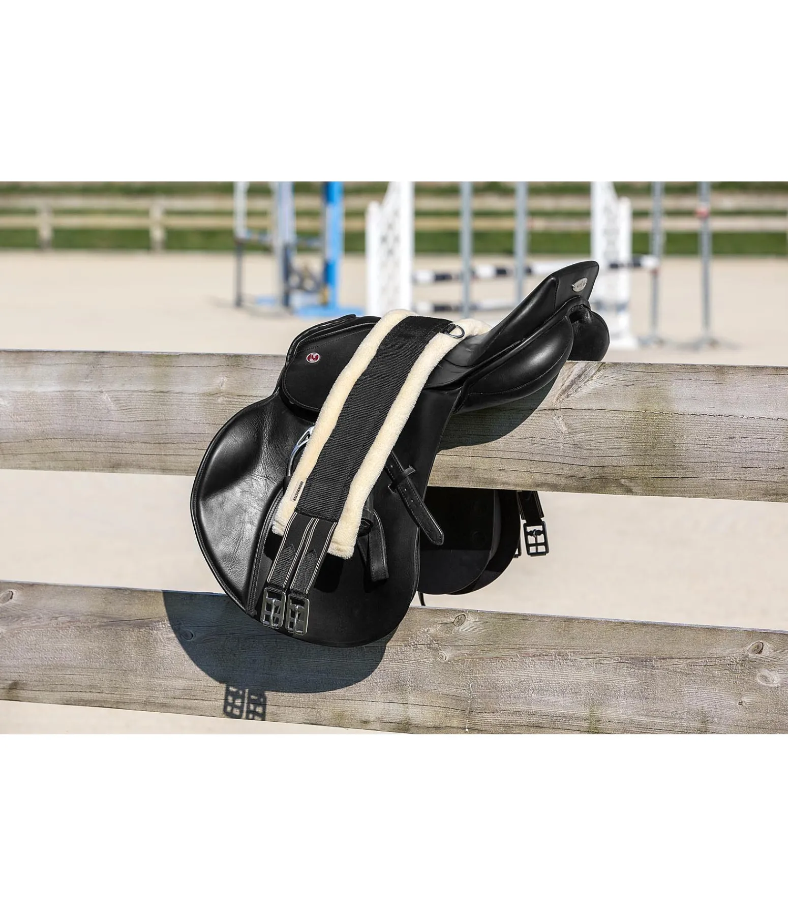 Sangle en nylon résistant à la déchirure avec empiècements élastiques des deux côtés, anneau central en D et boucles à rouleau. Doublure en polaire Teddy extra-douce, afin d’éviter les irritations dues aux frottements. Largeur 14,5 cm.