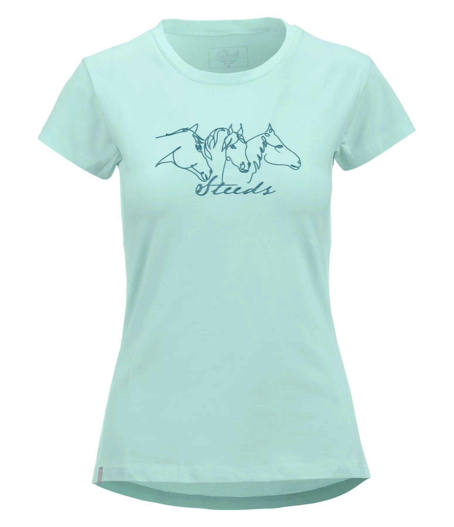 T-shirt décontracté à col rond et imprimé cheval sur la poitrine. 95 % coton, 5 % élasthanne.