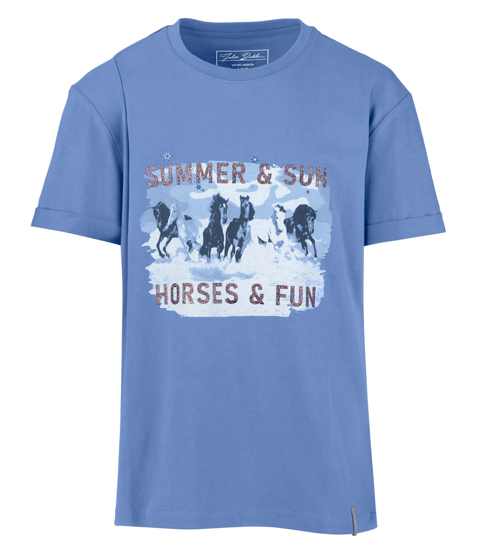 T-shirt décontracté à col rond pour enfant. Le superbe imprimé cheval avec inscription brillante à l’avant attire tous les regards. 100 % coton.