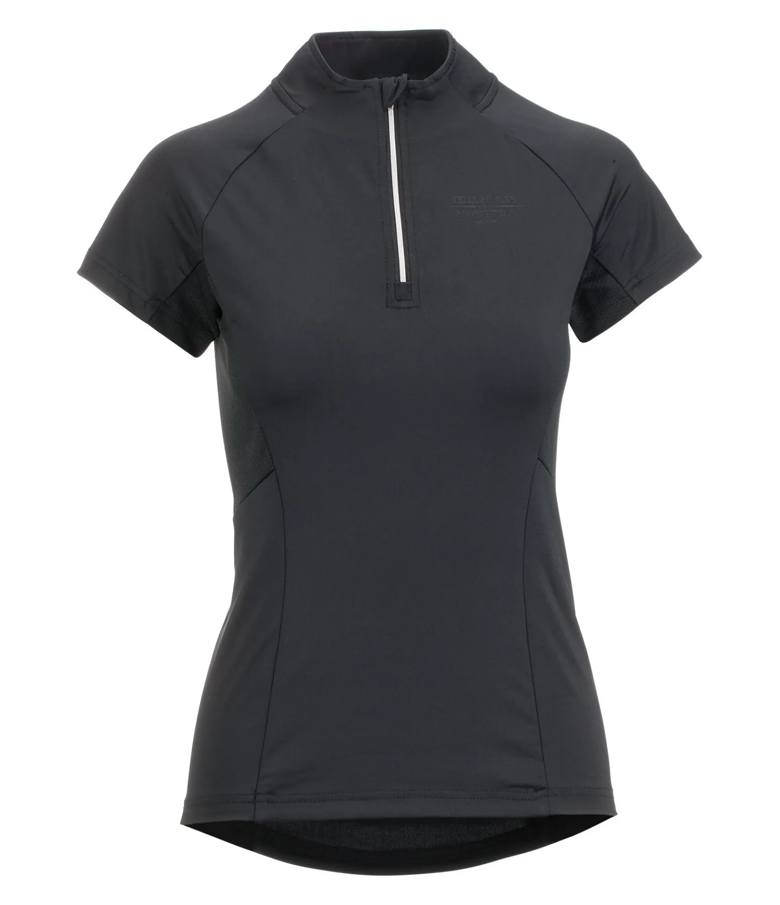 T-shirt extensible et doux. Col montant zippé. Empiècements en mesh pour une respirabilité optimale. Manches raglan. Séchage rapide. 88 % polyester, 12 % élasthanne.