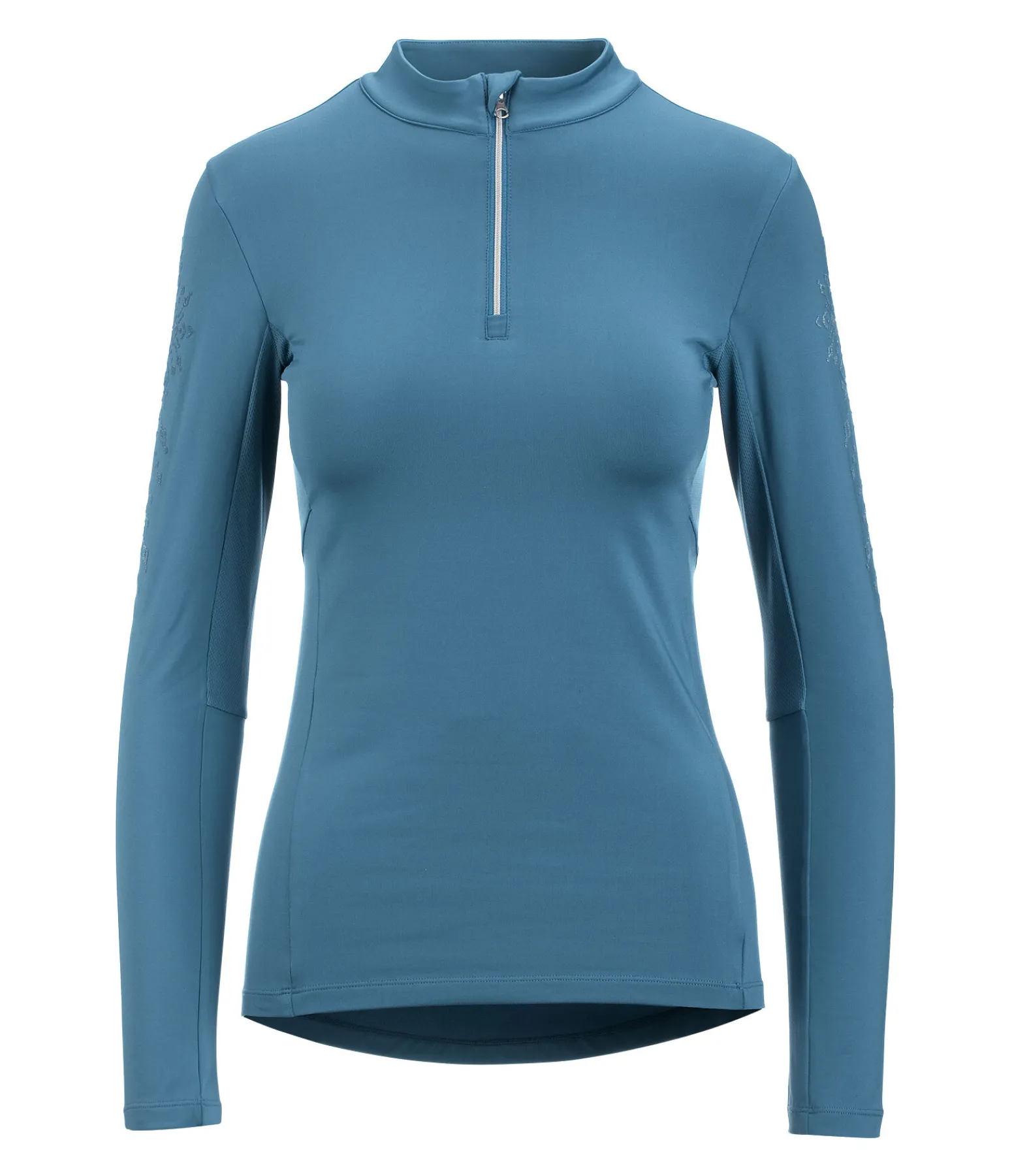 T-shirt technique élégant. Coupe ajustée près du corps. Imprimé en relief scintillant aspect velours. La matière stretch Performance de grande qualité est lisse à l’extérieur et molletonnée à l’intérieur. Matière respirante. Séchage rapide. Col montant zippé avec protège-menton. 94 % polyester, 6 % élasthanne.