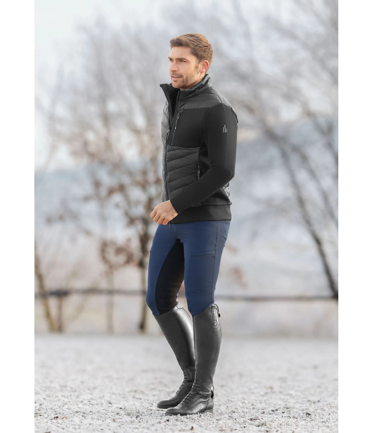 Un parfait mélange de design, de confort et de technicité. Veste d’équitation bi-matière sportswear avec l’avant, l’arrière et le col montant légèrement rembourrés. Look côtelé très tendance. Fermeture à glissière double sens avec sous-patte, 2 poches zippées devant et poche de poitrine zippée. Logo imprimé sur la manche. Finition bord-côte en bas des manches et à la taille. 87 % polyester, 13 % élasthanne, rembourrage : 100 % nylon.