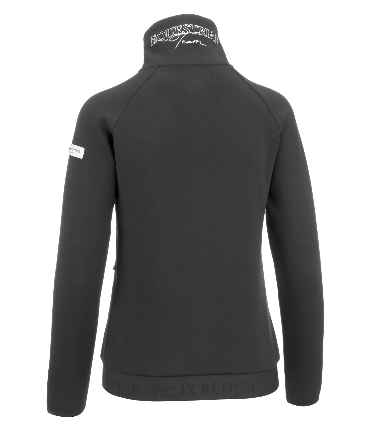 Veste douce en stretch Performance. Tissu technique de qualité supérieure, respirant et à séchage rapide. Col montant ajustable par cordon de serrage. Fermeture à glissière double sens avec sous-patte et protège-menton. Deux poches latérales zippées. Poignets élastiqués. Large élastique souple à la taille avec signature Felix Bühler. 83 % polyester, 12 % viscose, 5 % élasthanne.