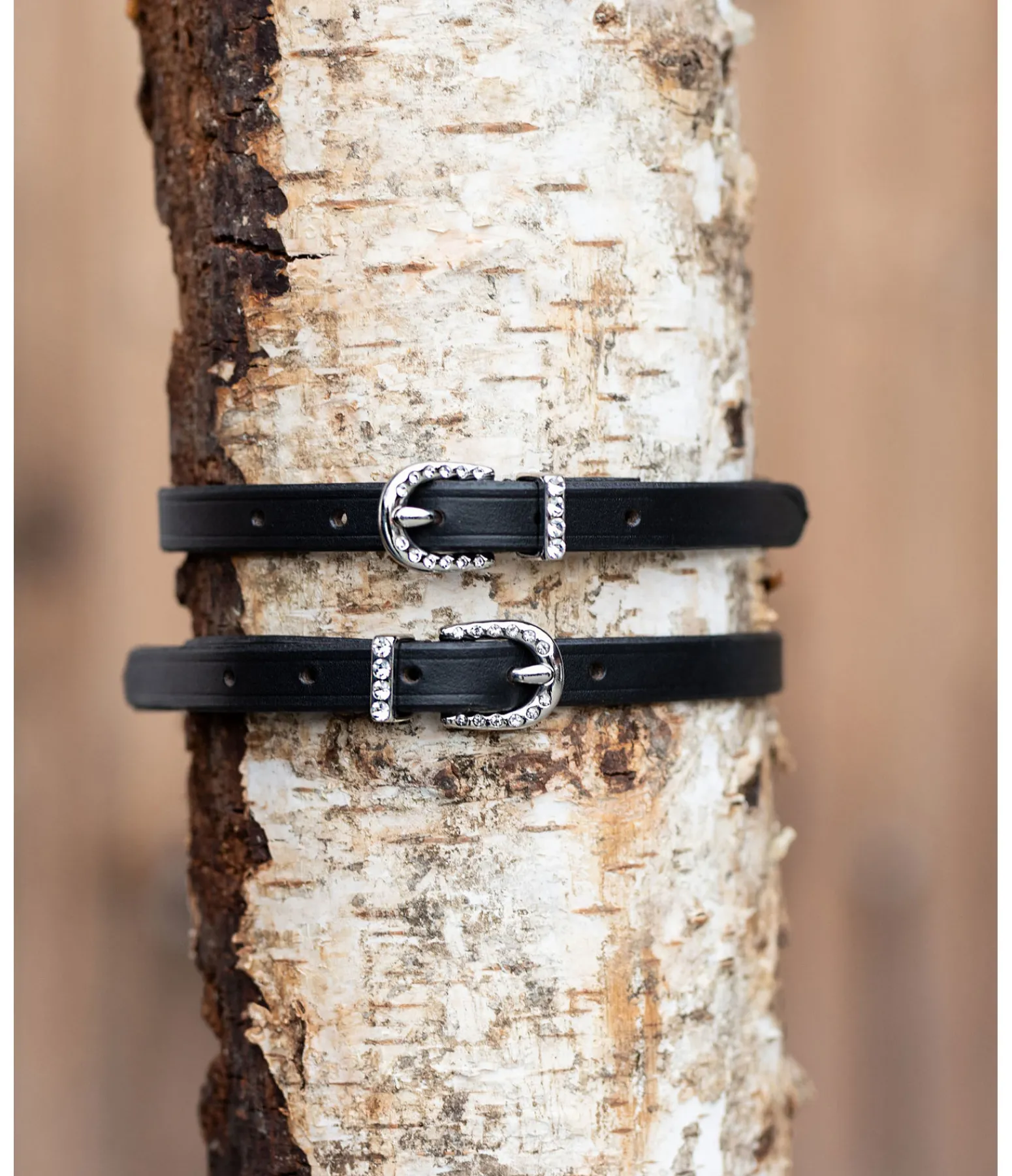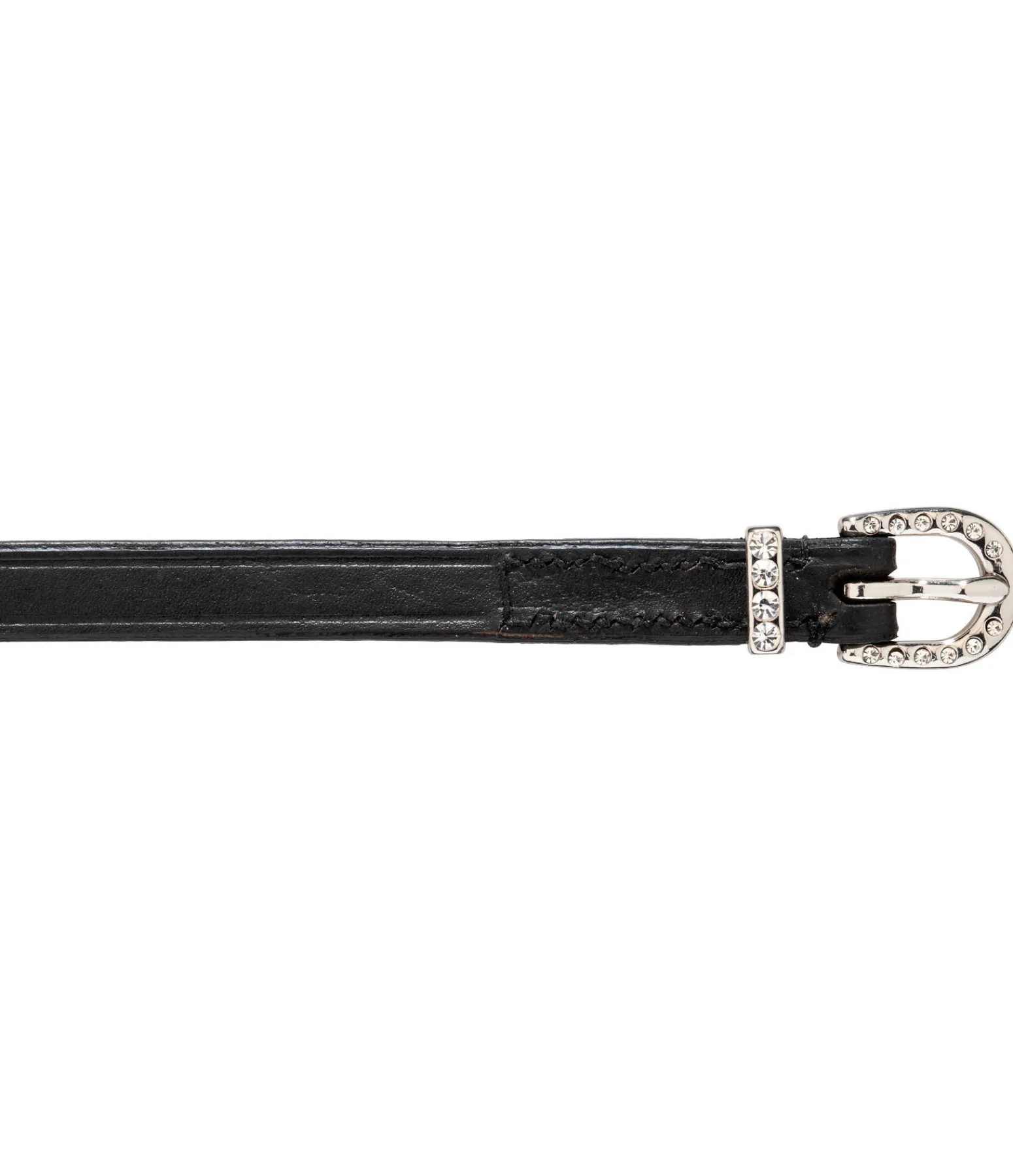 Lanières d’éperons en cuir de grande qualité avec boucles ornées de strass étincelants.
