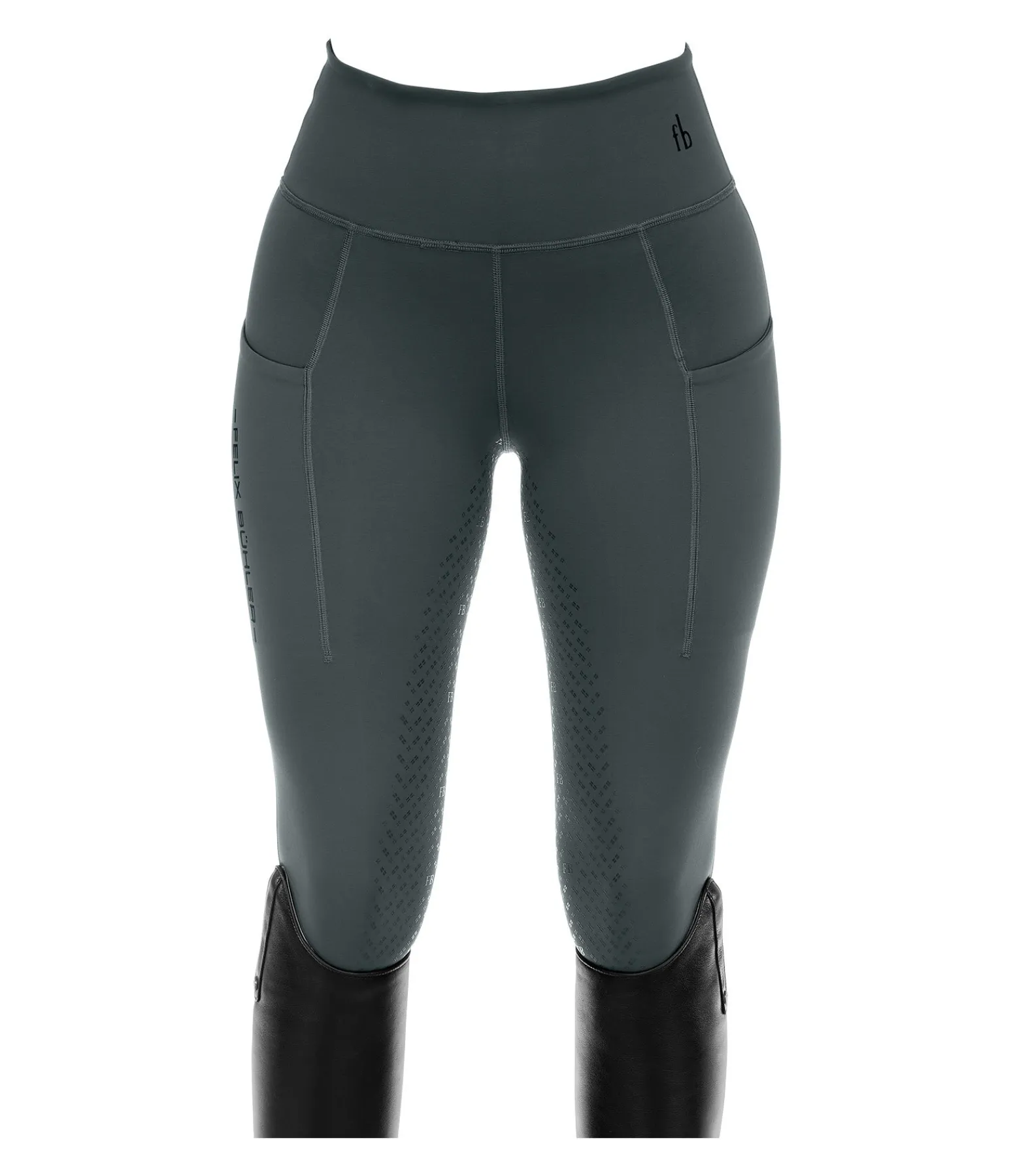 Super legging d’équitation d’hiver en matière stretch douce et extensible dans 4 directions avec fond intégral en silicone. Coupe ajustée. Respirant et à séchage rapide. 2 poches pour téléphone portable, une poche zippée derrière. Imprimés Felix Bühler en silicone, large ceinture avec passants, sans coutures aux genoux, bas de jambe extensible. 78 % polyester, 22 % élasthanne.