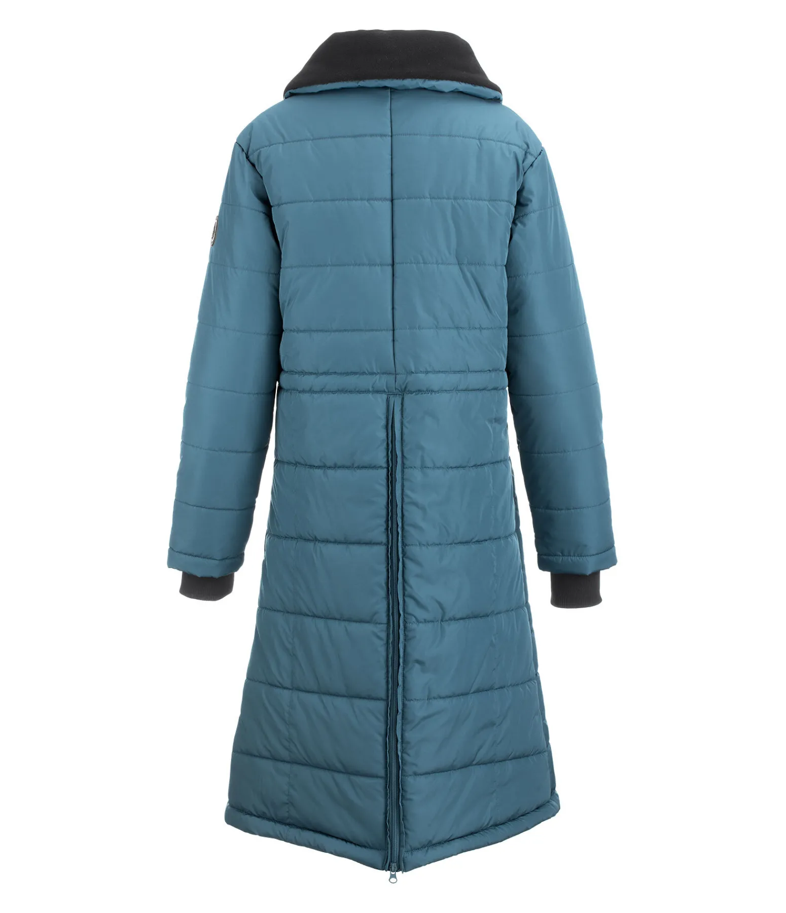 Manteau d’équitation extra long et chaud. Col haut doublé en polaire douce. Capuche doublée amovible. Bas des manches avec passe-pouce. Longue fente cavalière avec fermeture à glissière et soufflet protégeant de la pluie à l’arrière. Fermeture à glissière double sens. Courroies de cuisses. Deux grandes poches latérales avec bouton-pression et une poche intérieure zippée. Ajustable au niveau de la taille avec cordon de serrage. Rembourrage chaud. 100 % polyester.