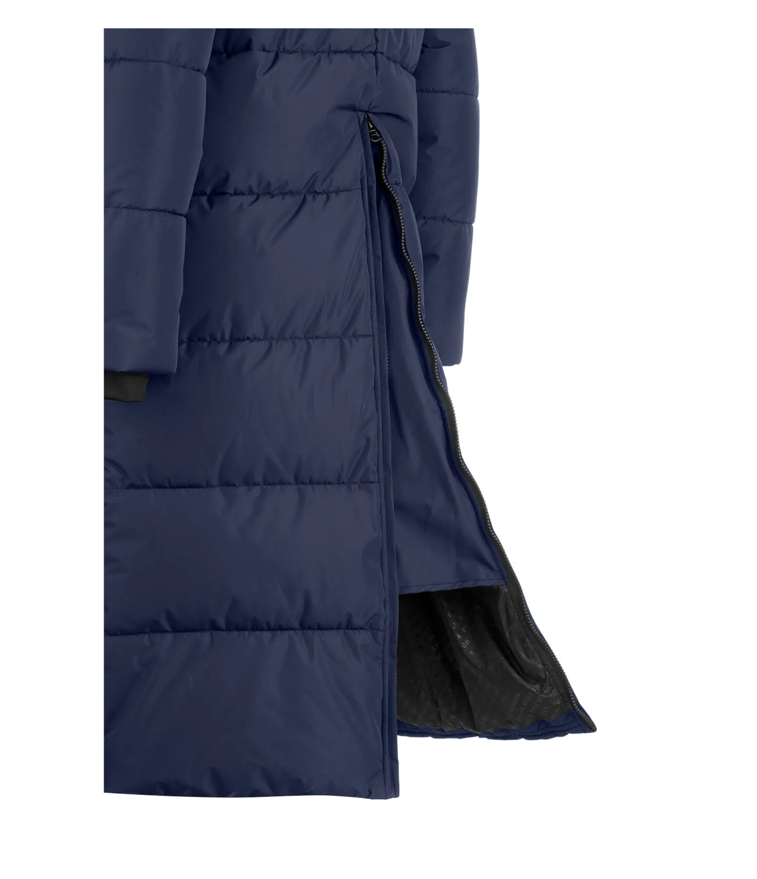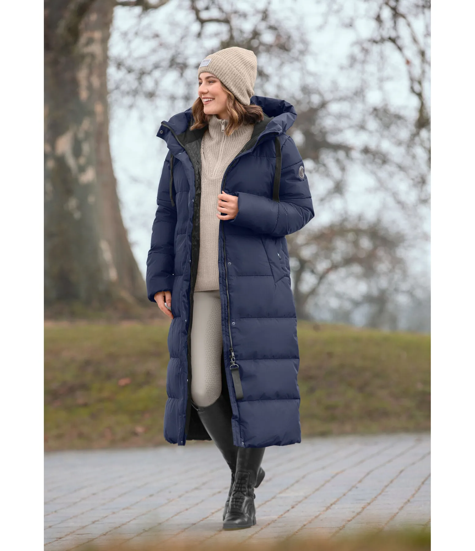 Notre coup de coeur ! Manteau d’équitation long à capuche, déperlant et coupe-vent. Coupe oversize. Garnissage doux imitation duvet. Fermeture à glissière double sens dissimulée avec protège-menton. Deux poches latérales zippées dissimulées et doublées en polaire douce. Bas des manches avec finition bord-côte. Cordon de serrage au niveau de la taille. Longue fente cavalière zippée à l’arrière. Capuche haute matelassée et doublée en polaire, ajustable par cordon de serrage et dotée d’un système de fixation dans le dos. Badge Felix Bühler sur la poitrine. Parfait pour les balades à vélo ou pour promener son chien. 100 % polyester.