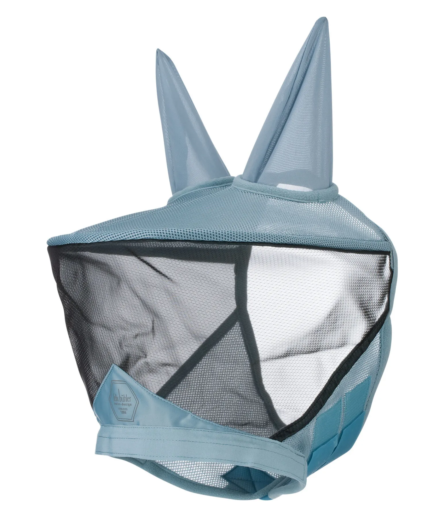 Masque anti-mouches inspiré de l’équipement des apiculteurs ! Protection amovible pour les naseaux, et protection anti-UV, en maille MVT (Moisture Vapor Transmission) particulièrement respirante. Permet une circulation permanente de l’air et empêche l’accumulation de chaleur sous le masque. Protège parfaitement les oreilles, les naseaux et les yeux des moustiques et autres insectes. En mailles serrées Ripstop particulièrement résistantes et arceau permettant de maintenir le filet à distance des yeux, même lorsque le cheval se roule et s’ébroue. Le protège-naseaux anatomique et amovible par patte auto-agrippante, permet de protéger cette zone sensible sans énerver le cheval ni gêner sa respiration. Bordure en polaire douce pour éviter les irritations dues aux frottements. Matière stretch extensible perforée aux oreilles. Double patte auto-agrippante pour un maintien sûr. Protection UV 60 % + (selon la norme BS EN 13758-1:2002 + A1:2006: textiles – protection contre les rayonnement ultraviolets du soleil). 100 % polyester