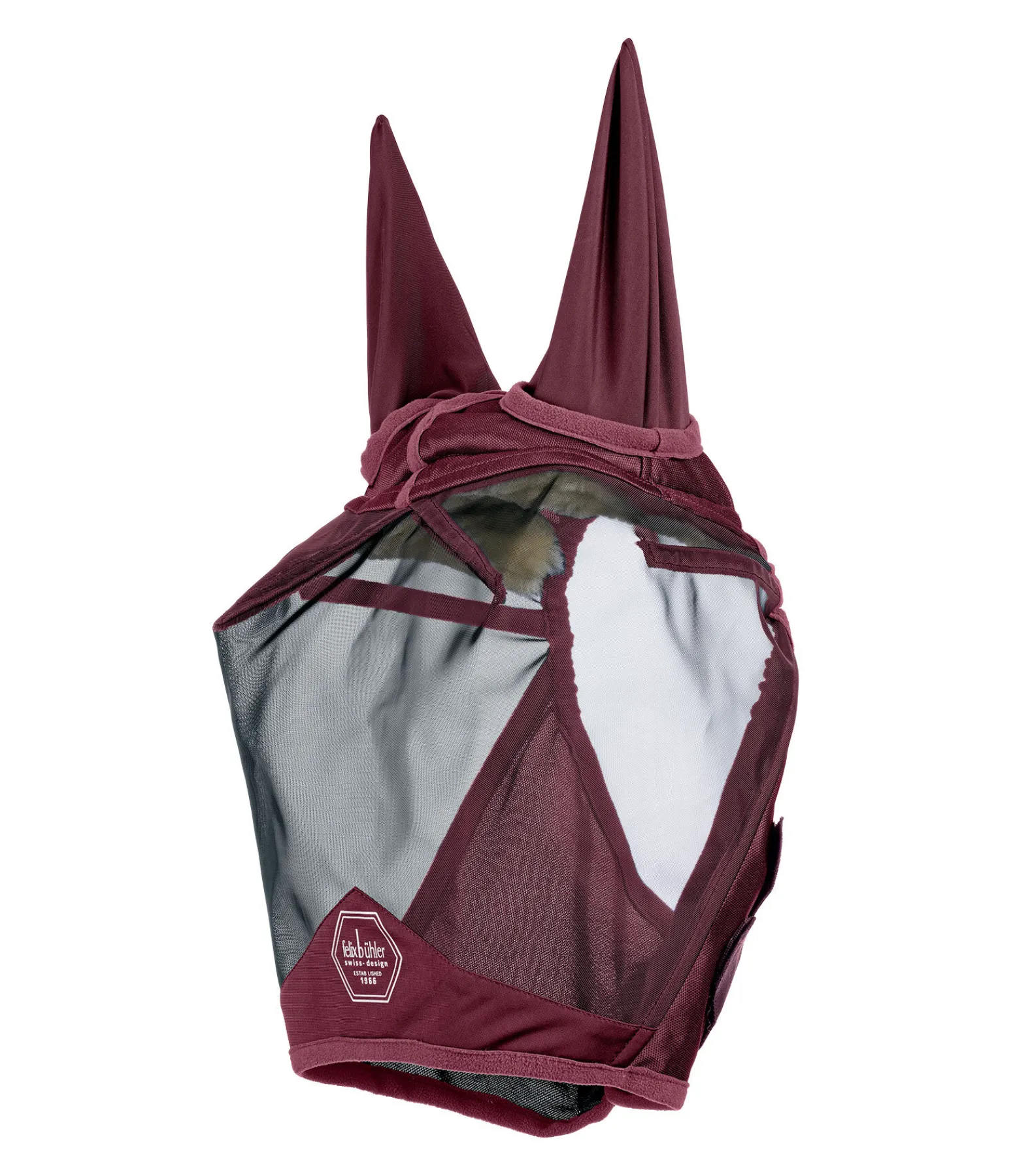Masque anti-mouches et anti-salissures. Idéal pour les chevaux sensibles. Filet à maille serrée avec coutures renforcées. Bloque au moins 50 % des rayons UV tout en offrant une bonne visibilité. Filet conçu dans une matière extensible absorbant l’humidité pour protéger les oreilles. Efficace contre les moustiques et autres insectes. Doublure en polaire Teddy douce au niveau du front pour un confort optimal et bordure en polaire autour du chanfrein pour éviter les irritations dues aux frottements, élastiqué autour de l’encolure pour un ajustement parfait. Avec passage de toupet et double patte auto-agrippante pour un maintien sûr. 100 % polyester.