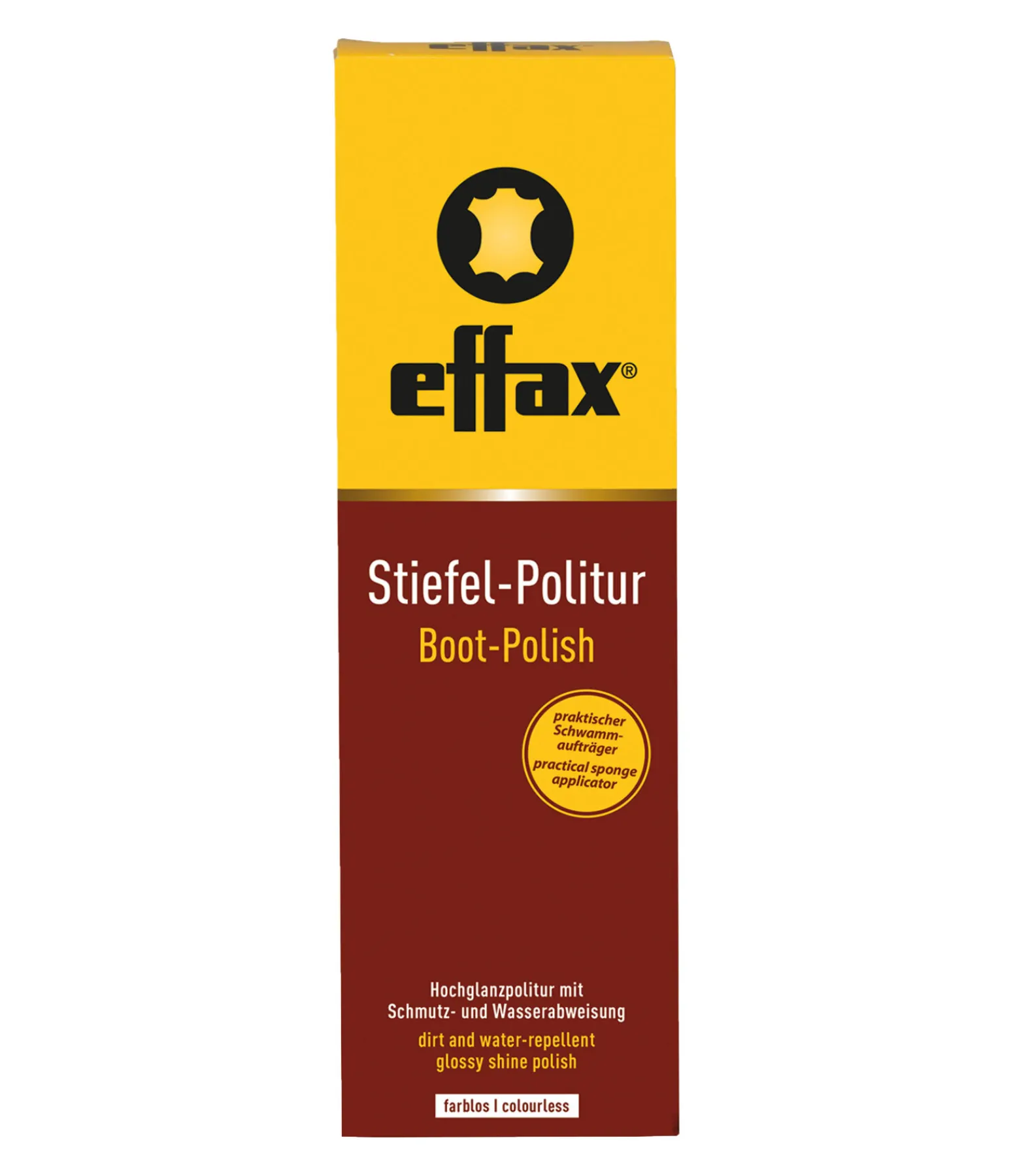 Application : après le nettoyage des bottes, appliquer le cirage en fine couche et lustrer. Conseil : pour un résultat encore plus brillant, utiliser un chiffon doux et sec.