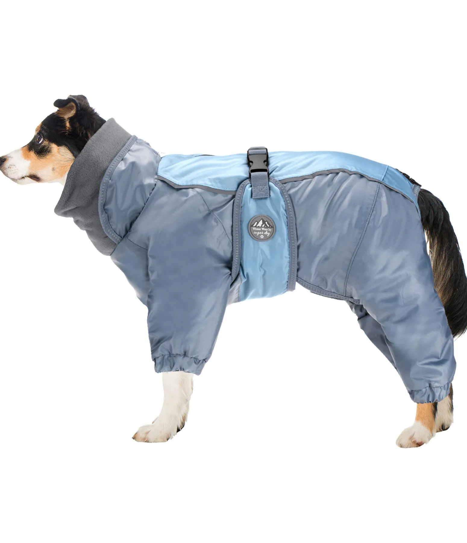 Pour une protection maximale lors des promenades dans la neige ! Combinaison de neige chaude avec garnissage de 120 g. Doublure lisse thermique pouvant refléter la chaleur corporelle et protéger efficacement du froid (revêtement en aluminium de couleur argentée fonctionnant comme une couverture de survie). Déperlante et coupe-vent. Convient parfaitement aux chiens frileux ou avec peu ou pas de sous-poil. Col montant en polaire bien ajusté pour protéger le cou du vent et du froid. Passage pour attacher la laisse au collier. Sangle ventrale avec fermeture à clip réglable en longueur. Facilement ajustable à la morphologie du chien. Fermeture à glissière double sens étanche sur toute la longueur du dos pour un enfilage rapide et laissant passer la laisse à fixer au harnais. Fronce élastiquée sur chaque patte pour un confort optimal. Matière extérieure 100 % polyester, doublure intérieure 90 % polyester, 10 % aluminium.