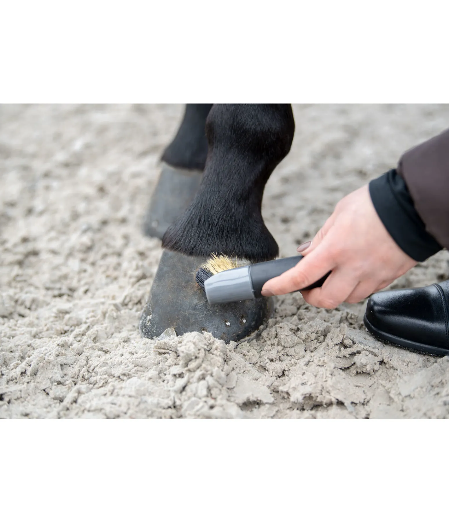 Cure-pied robuste avec poils métalliques et synthétiques. Les poils métalliques permettent d’enlever les saletés tenaces ou incrustées dans le sabot. La poignée antidérapante en caoutchouc permet une bonne prise en main. 22 cm.