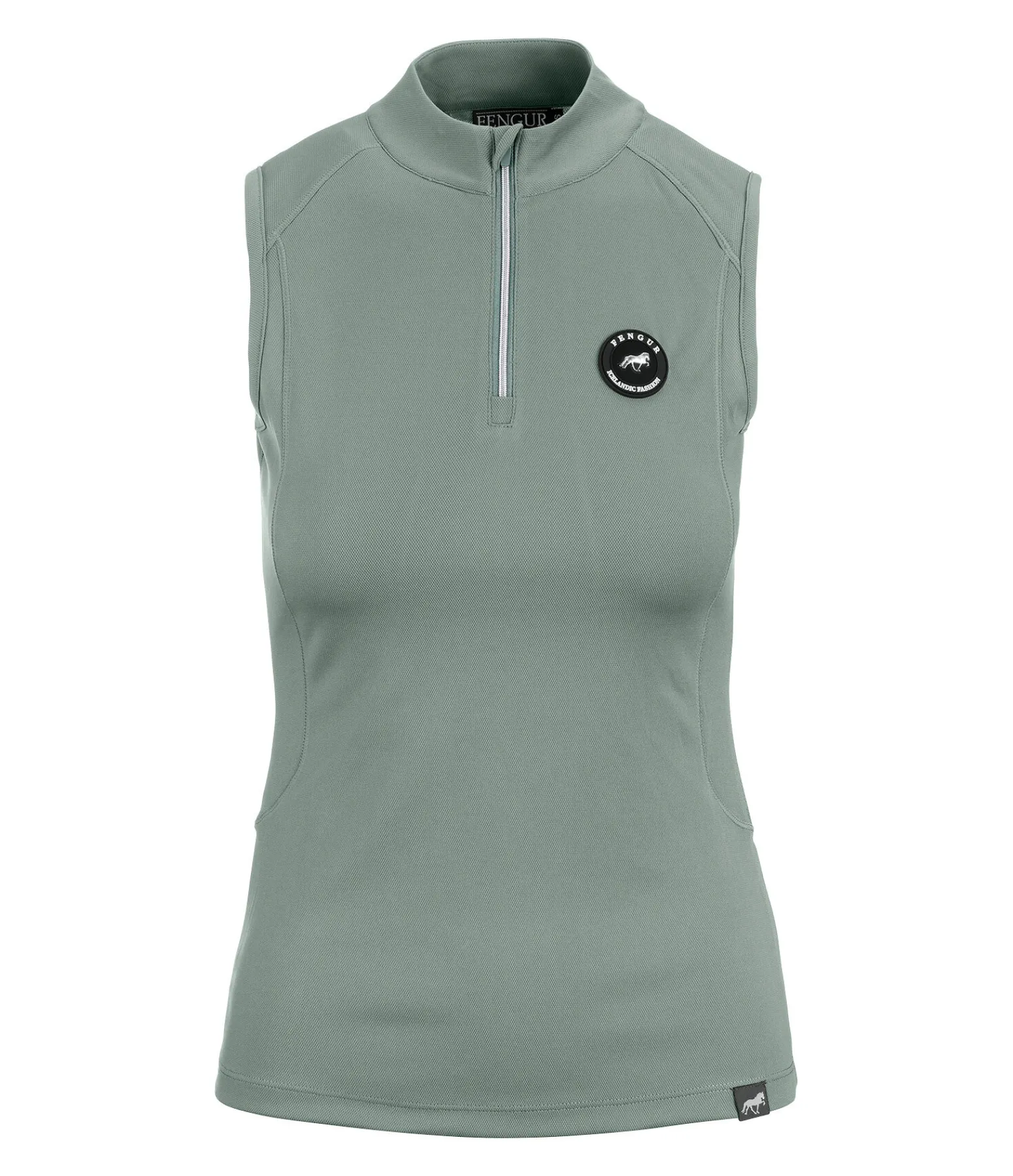 Débardeur technique sans manches en mesh respirant. Petit col montant avec fermeture à glissière et protège-menton. Badge logo FENGUR sur la poitrine. 100 % polyester.