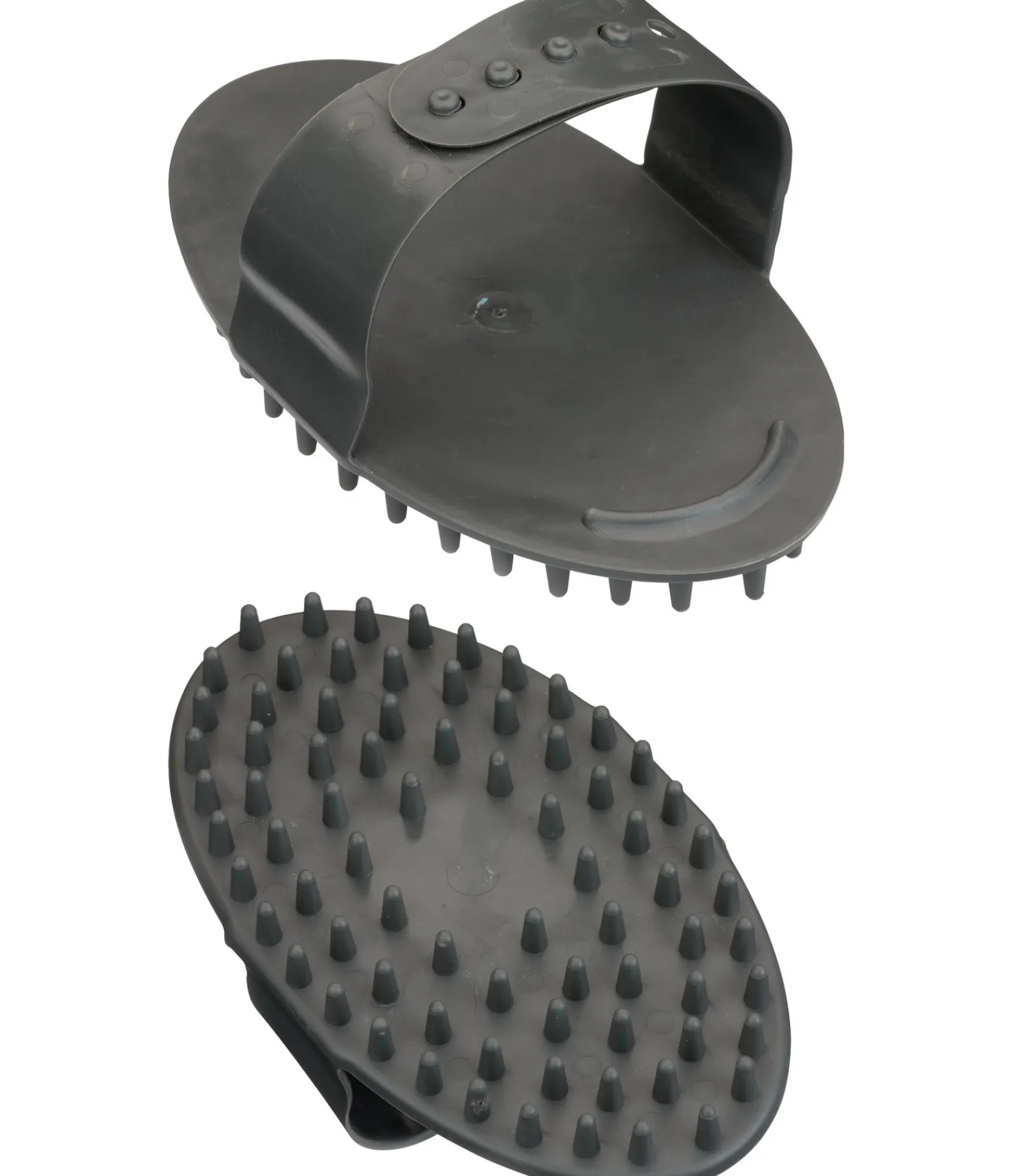 Étrille à picots très flexibles en plastique souple. Idéale pour le massage des chevaux et en période de mue. Le bord arrondi au niveau des doigts permet une prise en main optimale lors du pansage et fait gagner en efficacité. Avec dragonne ajustable. 16 x 9,5 cm.