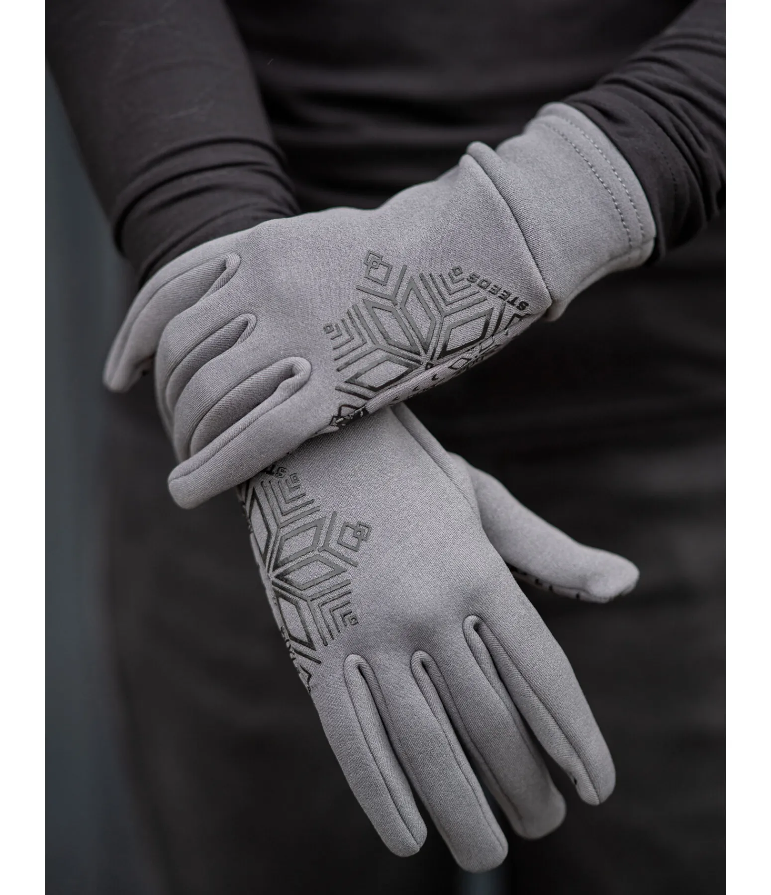 Gants d’équitation sportifs en polaire douce, également adaptés aux journées très froides. Paume avec imprimé flocon de neige. Dessus 100% nylon, intérieur 100% polyester.