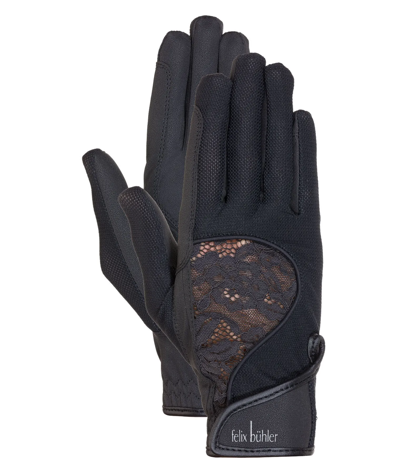 Gants d’équitation fins avec élégant élément en dentelle sur le dos de la main. Paume antidérapante avec renfort aux passages de rênes. Mesh respirant sur le dos de la main. Poignets élastiqués avec patte auto-agrippante. Dessus 100 % nylon, paume 60 % polyester, 40 % polyuréthane.