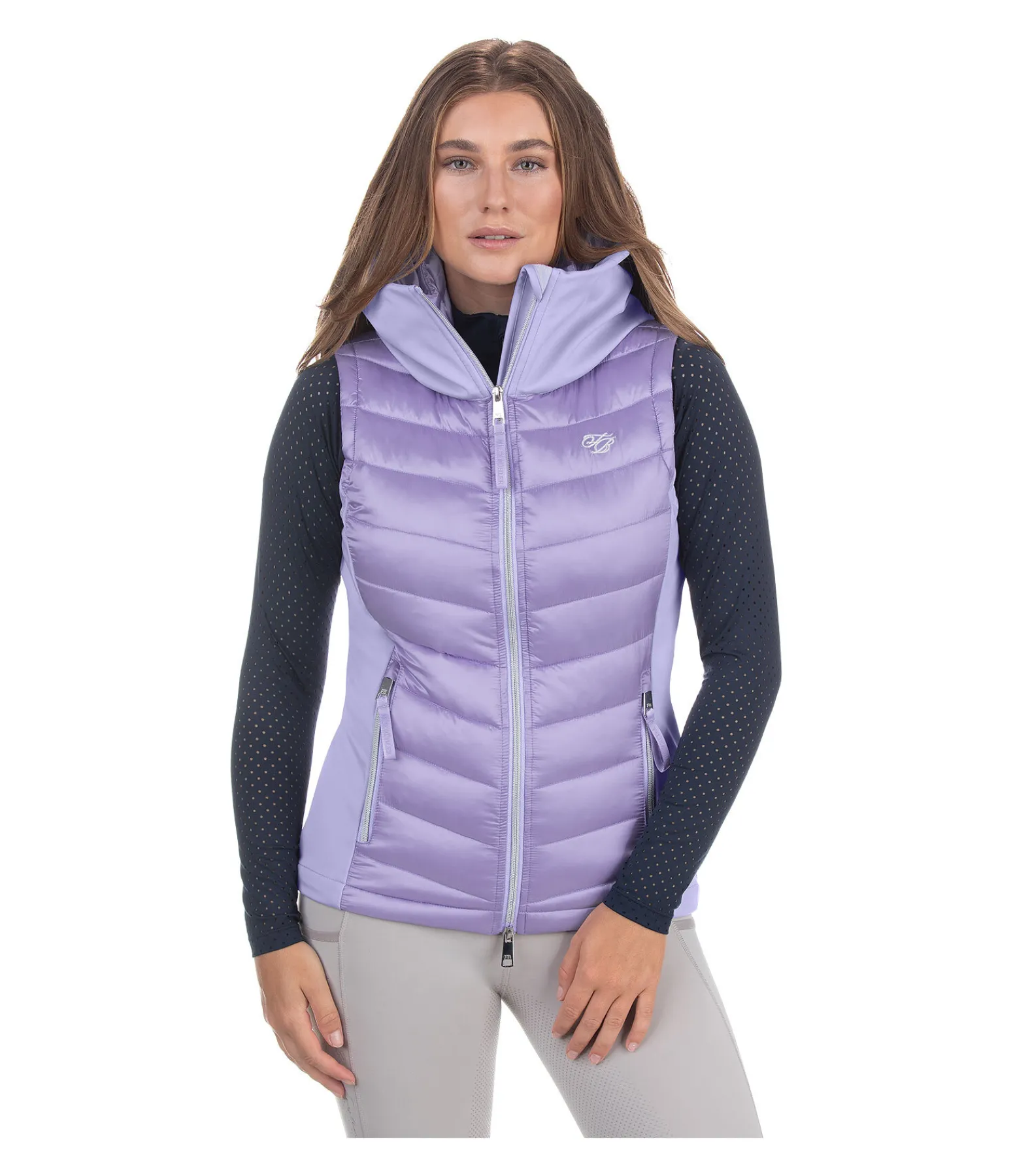 Gilet d’équitation bi-matière élégant. Coupe-vent. Matelassage doux et brillant avec garnissage léger. Col montant et côtés en softshell extensible. Capuche matelassée qui se range dans le large col zippé. Fermeture à glissière double sens brillante avec sous-patte et protège-menton. Deux poches latérales zippées. Taille réglable. Matelassage 100 % nylon ; softshell 92 % polyester, 8 % élasthanne.