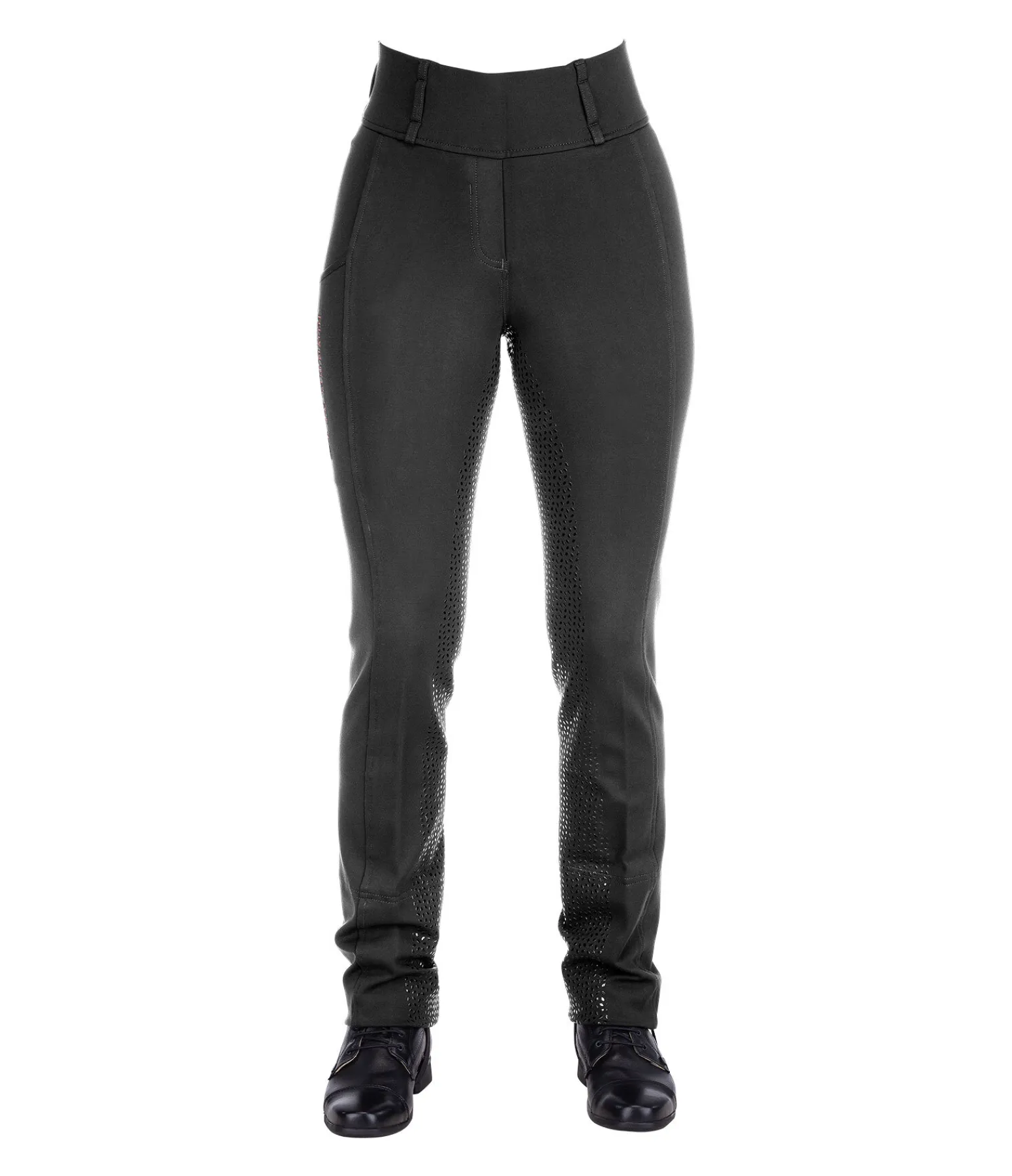 Confortable legging d’équitation jodhpur à fond intégral en silicone, souple et extensible dans 4 directions. Matière respirante. Séchage rapide. Coupe bootcut. Sous-pieds élastiques réglables. Ceinture extra large élastiquée avec passants. 1 poche pour téléphone portable sur la cuisse. 1 poche arrière zippée. Aucune couture au niveau des genoux. 68 % viscose, 27 % nylon, 5 % élasthanne.