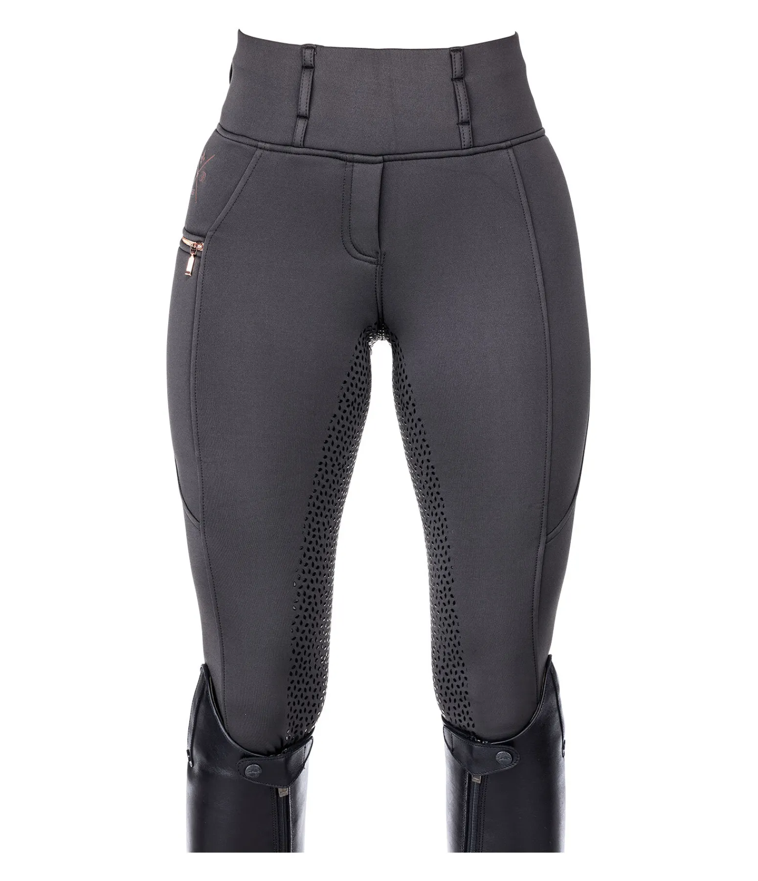 Legging d’équitation chaud. Fond intégral en silicone. Matière stretch respirante extensible dans 4 directions. Séchage rapide. Intérieur molletoné. Imprimés Felix Bühler. Ceinture large avec passants. Une poche latérale zippée pour téléphone portable. Aucune couture au niveau des genoux. Bas de jambe extensible. 60 % polyester, 33 % polyamide, 7 % élasthanne.