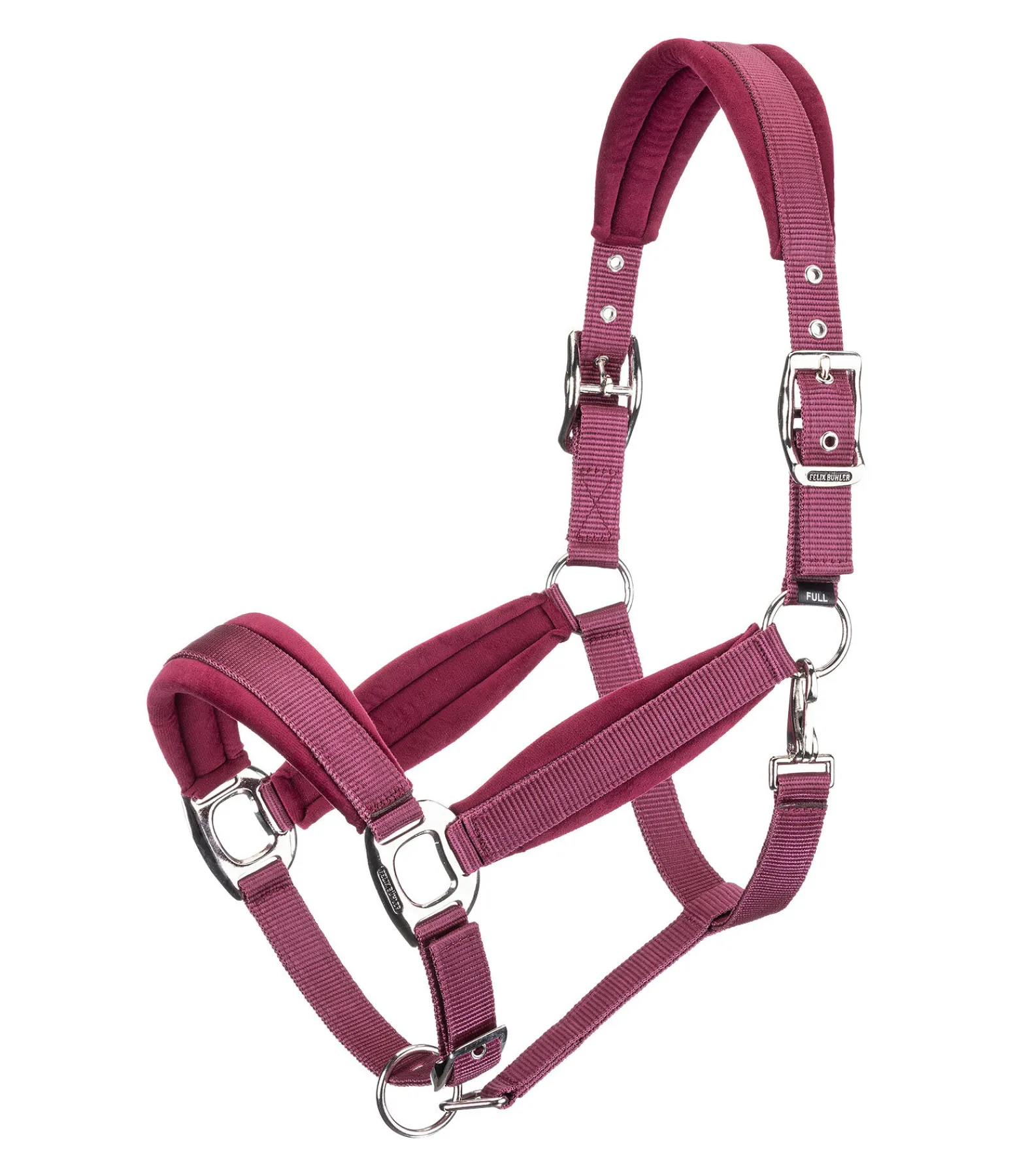 Licol élégant avec doublure effet velours sur la têtière, la muserolle et les montants. Têtière réglable des deux côtés et muserolle à réglage facile. Bouclerie argentée. 100 % polypropylène.
