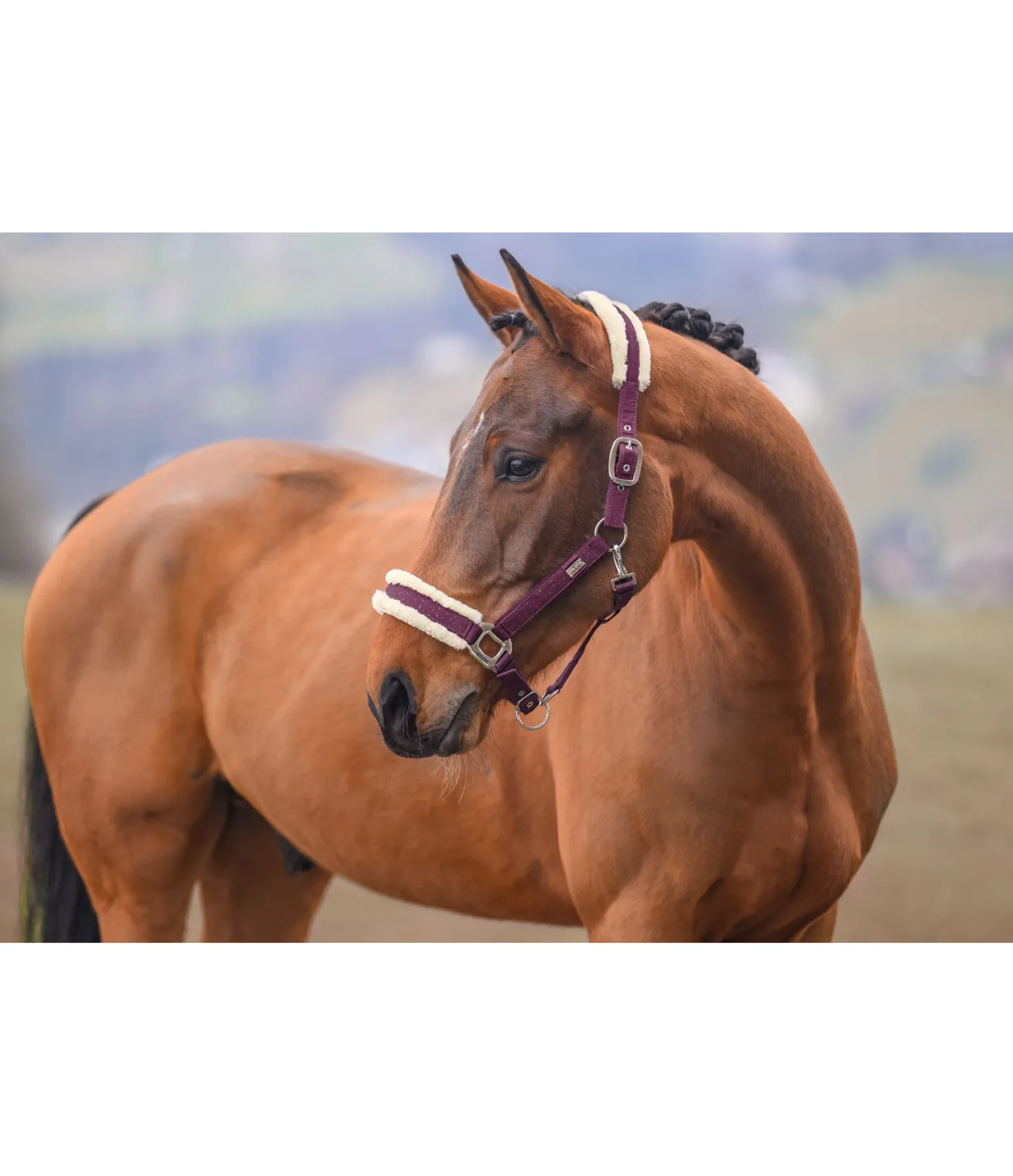 Magnifique licol avec revêtement satiné orné de fragments scintillants et bouclerie de couleur assortie. Têtière et muserolle avec doublure douce en polaire Teddy. Petite plaque élégante avec logo gravé sur chaque montant. Têtière doublement réglable et muserolle réglable. Licol 100 % polypropylène, doublure et revêtement 100 % polyester.
