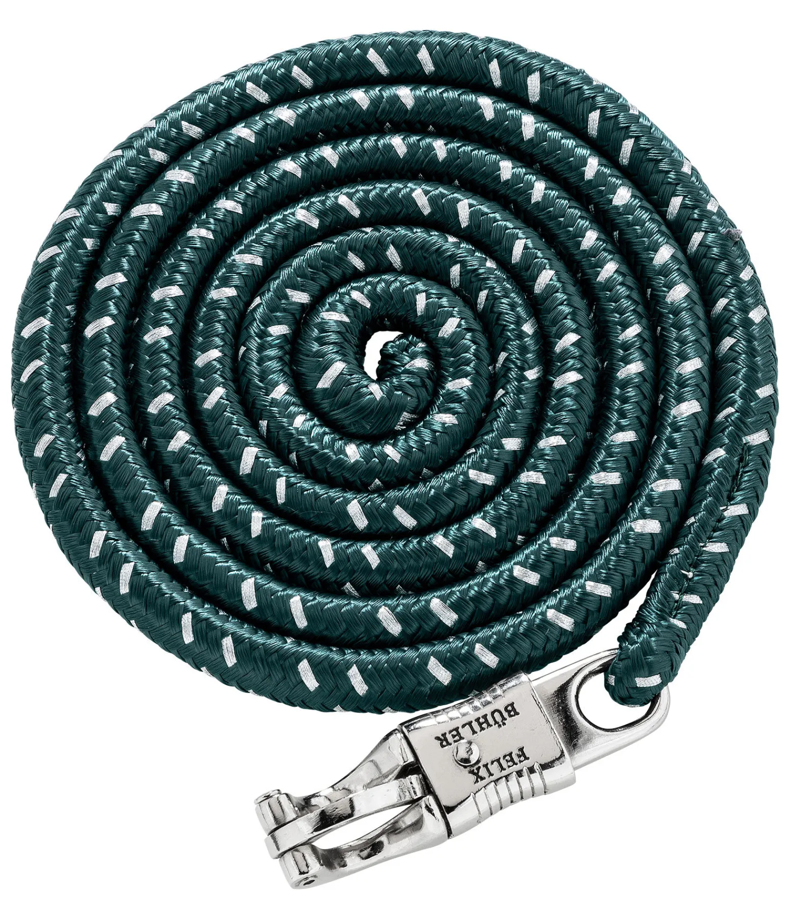 Longe d’attache ronde avec tressage serré, fil scintillant et mousqueton anti-panique de couleur assortie. Parfaitement assortie au licol 310047. 2 m. 100 % polyester.