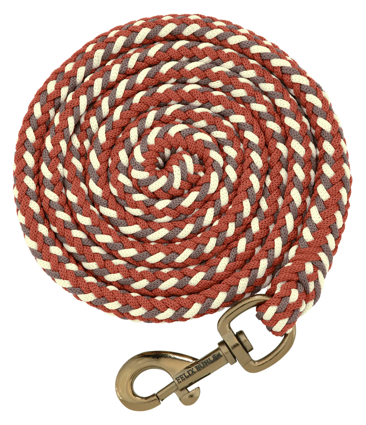 Longe tressée tricolore solide avec mousqueton. 2 m. 100 % polyester. Assortie au licol 310056.