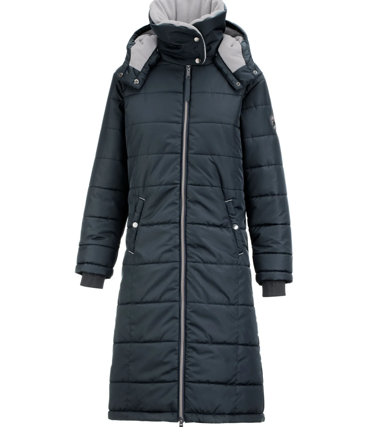 Manteau d’équitation extra long et chaud. Col haut doublé en polaire douce. Capuche doublée amovible. Bas des manches avec passe-pouce. Longue fente cavalière avec fermeture à glissière et soufflet protégeant de la pluie à l’arrière. Fermeture à glissière double sens. Courroies de cuisses. Deux grandes poches latérales avec bouton-pression et une poche intérieure zippée. Ajustable au niveau de la taille avec cordon de serrage. Rembourrage chaud. 100 % polyester.