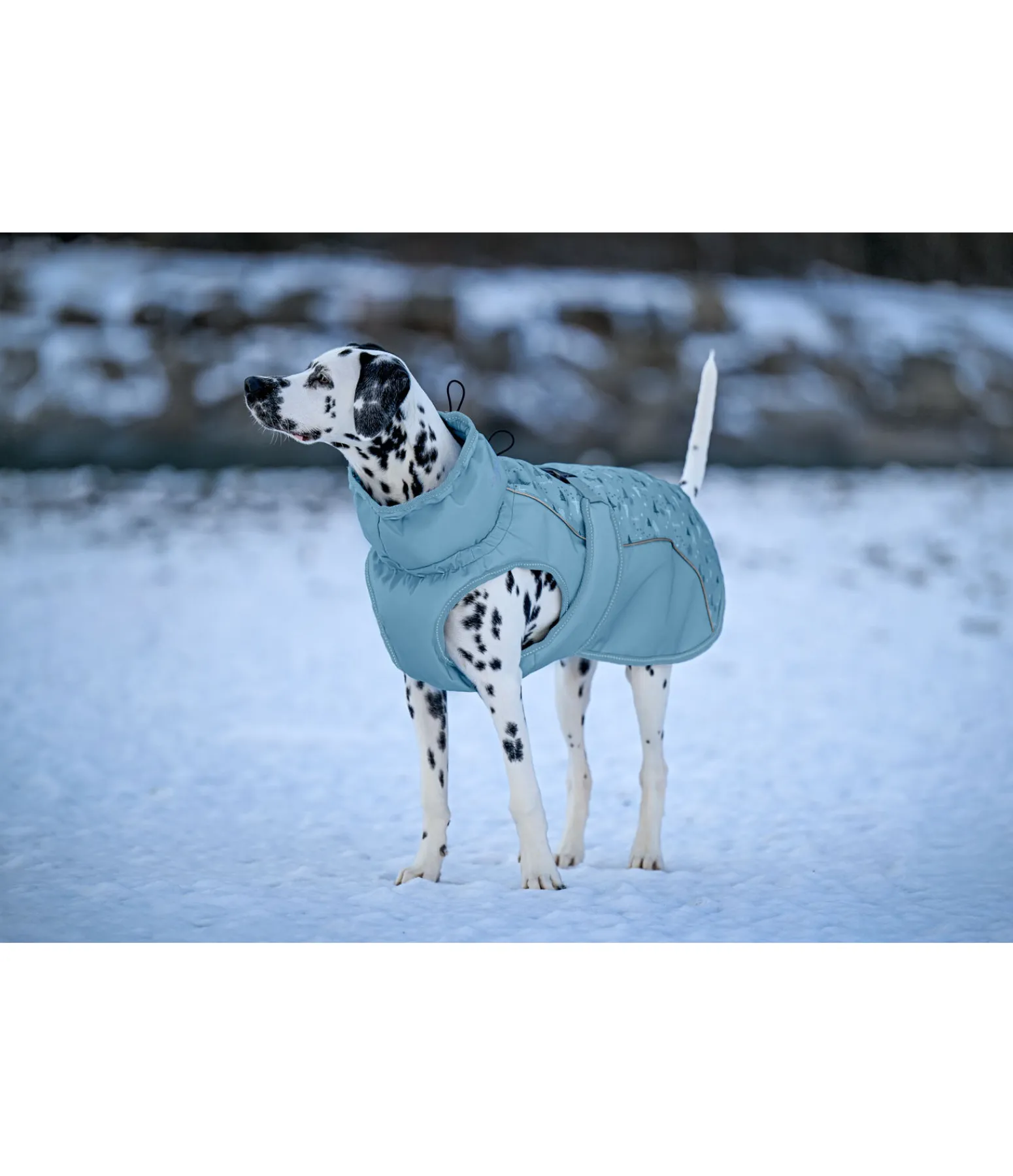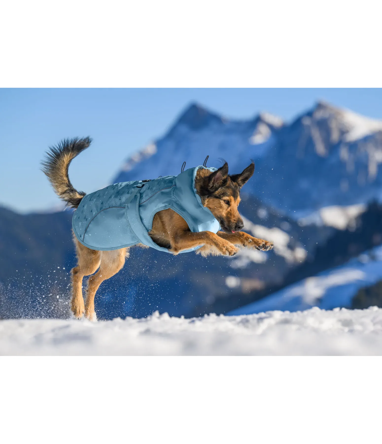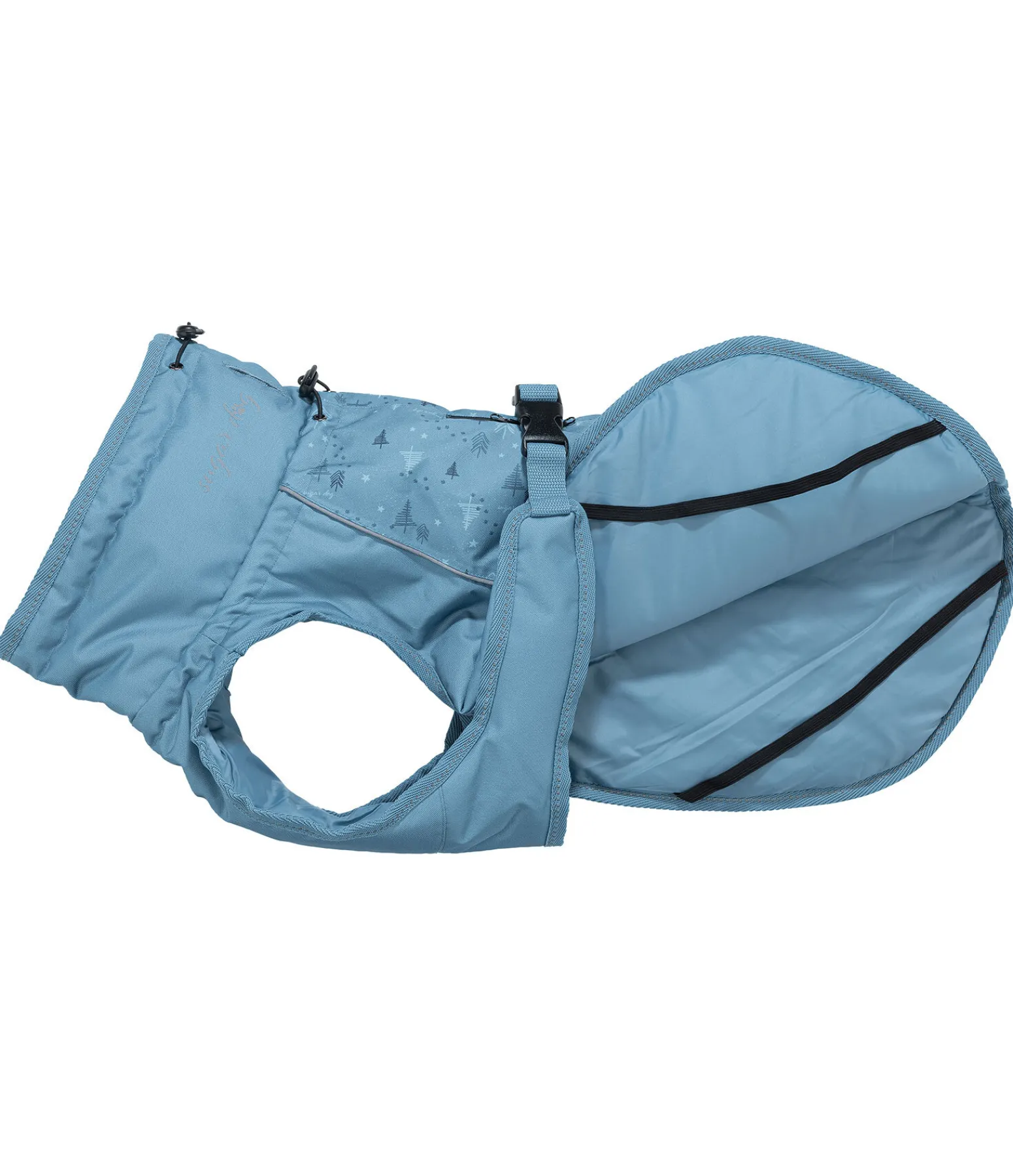 Manteau d’hiver imperméable (3 000 mm) et respirant avec un motif hivernal imprimé. Éléments réfléchissants sur le bord, passepoil réfléchissant et logo réfléchissant sur le col. Garnissage chaud de 140 g avec intérieur lisse au niveau du tronc et du poitrail pour un confort optimal. Idéal pour les journées froides et humides d’automne ou d’hiver. Dessus en polyester Oxford 600 deniers robuste et résistant à la déchirure. Ajustable à la morphologie du chien grâce aux réglages prévus au niveau du cou et au rabat ventral qui se règle en continu et se ferme par clip. Passage de harnais étanche et passage de collier au niveau du col. Des courroies de cuisses élastiques permettent d’éviter que le manteau ne glisse lorsque le chien s’amuse. Découpes au niveau des pattes avant pour une liberté de mouvement maximale. 100 % polyester.