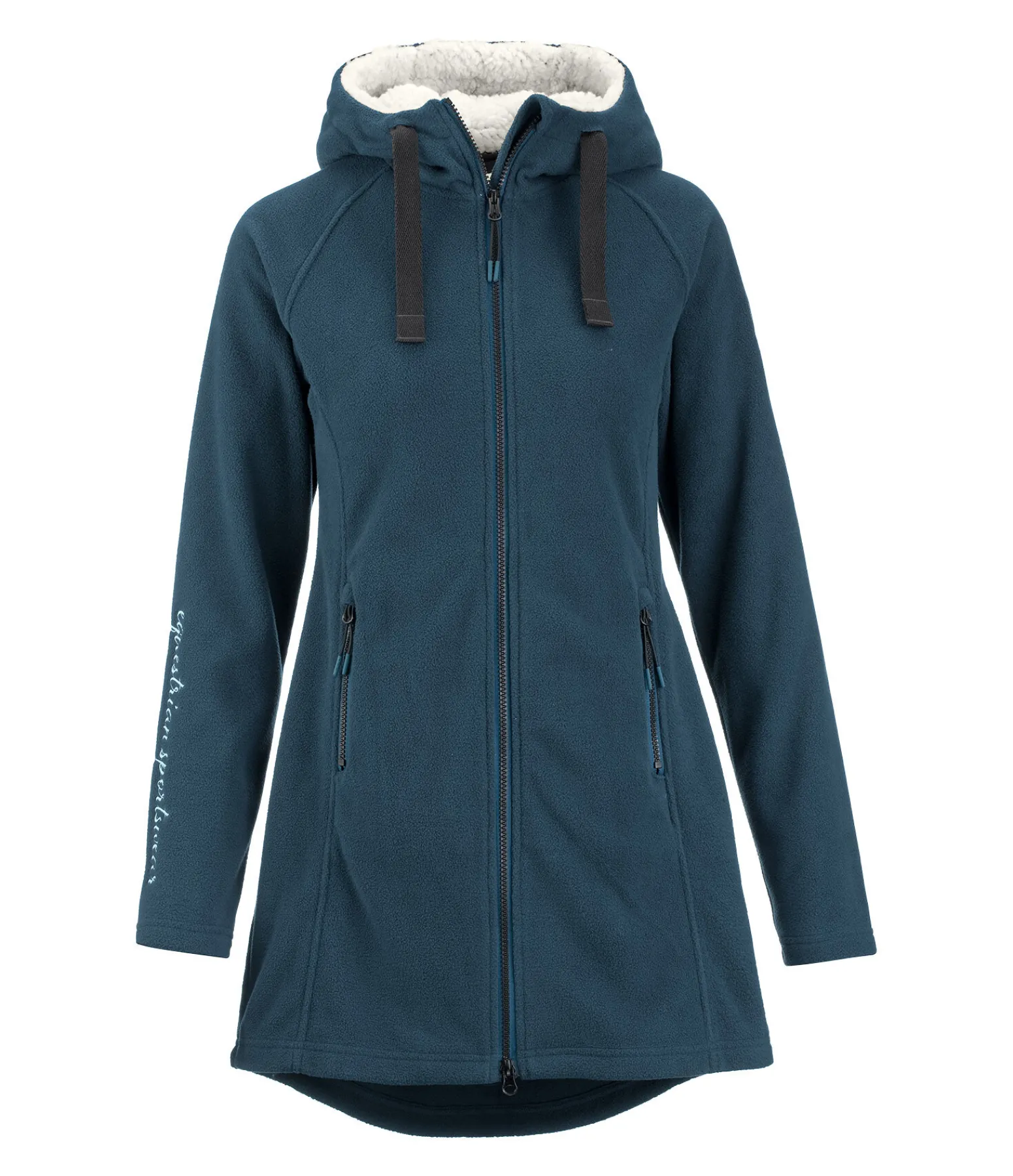 Manteau chaud en polaire agréable à porter. Capuche réglable doublée en fourrure Teddy douce. Fermeture à glissière double sens avec sous-patte. Deux poches zippées latérales. Badge STEEDS et broderie sur la manche. 100 % polyester.