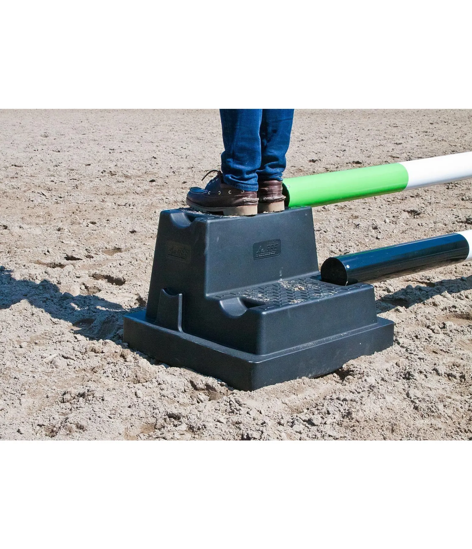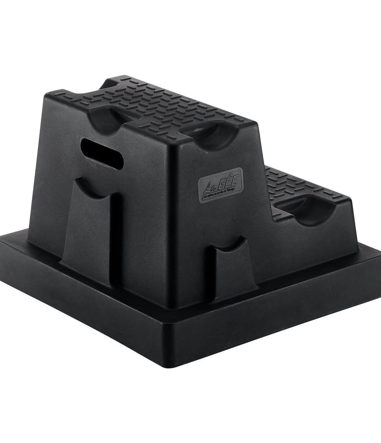 Montoir solide et robuste, avec bords arrondis. Grâce à ses 5 encoches à diverses hauteurs, il peut également servir de bloc cavaletti. Poids 4 kg. 56 x 58 x 40 cm.
