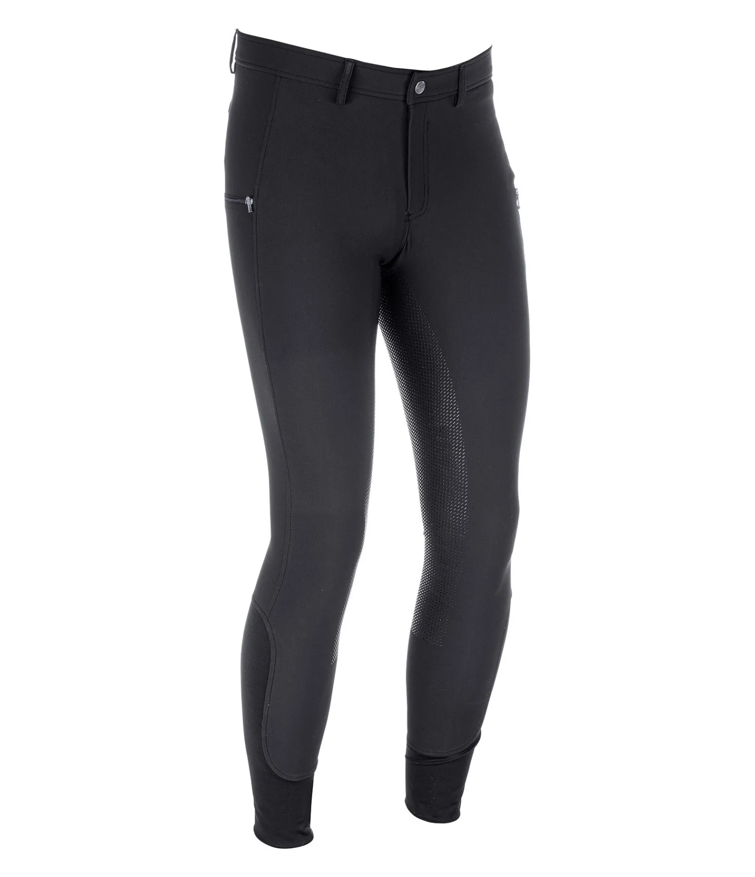 Pantalon d’équitation technique avec fond intégral grip en silicone. Matière déperlante et respirante. Ceinture élastiquée avec passants. Poche zippée latérale sur les deux jambes pour garder le téléphone portable en toute sécurité à cheval. Logo discret brodé à l’avant. Bas de jambe extensible sans patte auto-aggripante. Déperlant et respirant. 93% polyamide, 7% élasthanne.