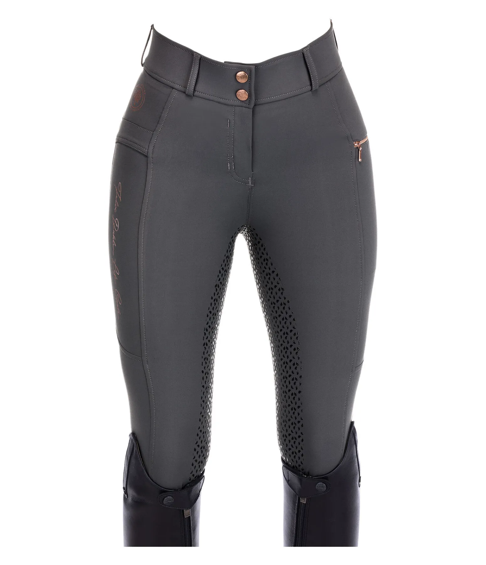 Durable et confortable ! Pantalon d’équitation à fond intégral grip en silicone extrêmement agréable à porter. Conçu principalement en stretch recyclé de grande qualité. Imprimés Felix Bühler Life Cycle. Matière respirante. Séchage rapide. 2 poches arrière et 2 poches latérales pour téléphone portable, dont une avec fermeture à glissière. Ceinture extra large avec 2 boutons. Aucune couture au niveau des genoux. Bas de jambe extensible en stretch. 89 % polyester, 11 % élasthanne.