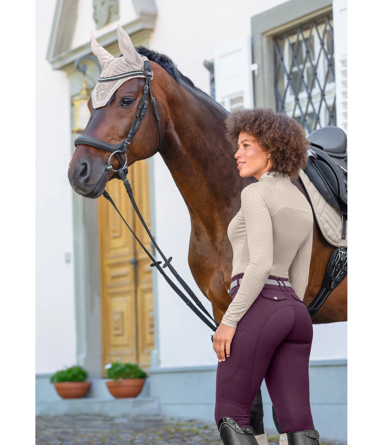 Pantalon d’équitation super confortable et léger à fond intégral grip en silicone. Stretch extensible dans 4 directions pour un effet sculptant garanti. Matière respirante à séchage rapide. Tissu très aéré grâce à la découpe laser sur les jambes. Large ceinture avec passants et deux boutons. Une poche pour téléphone portable sur chaque jambe. Deux fausses poches arrière. Aucune couture sur les genoux. Badges Felix Bühler. 78 % polyester, 22 % élasthanne.
