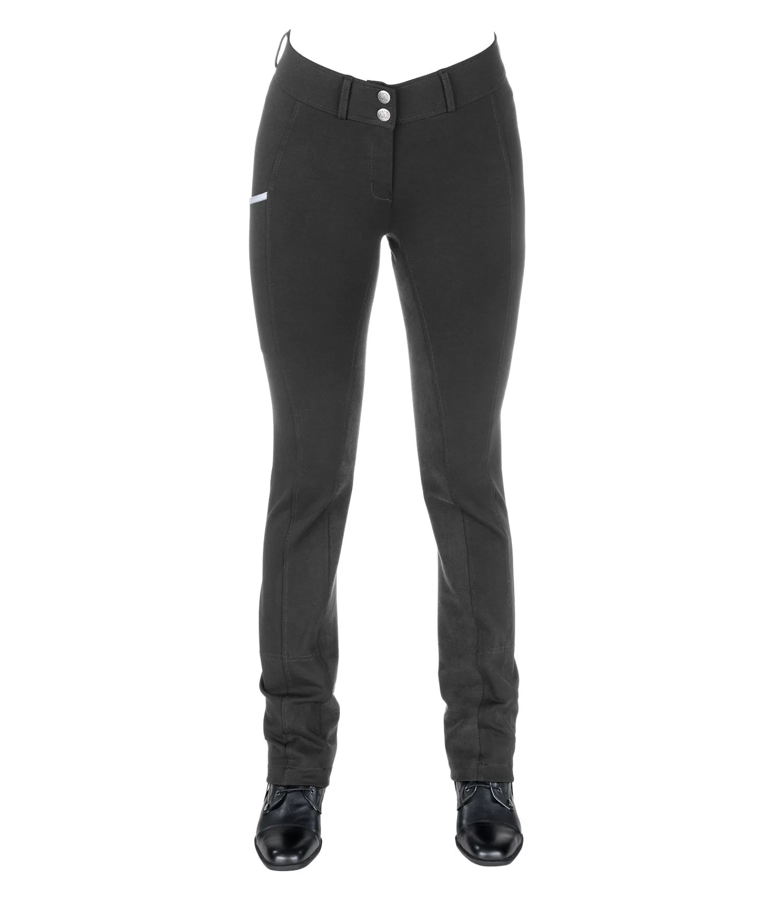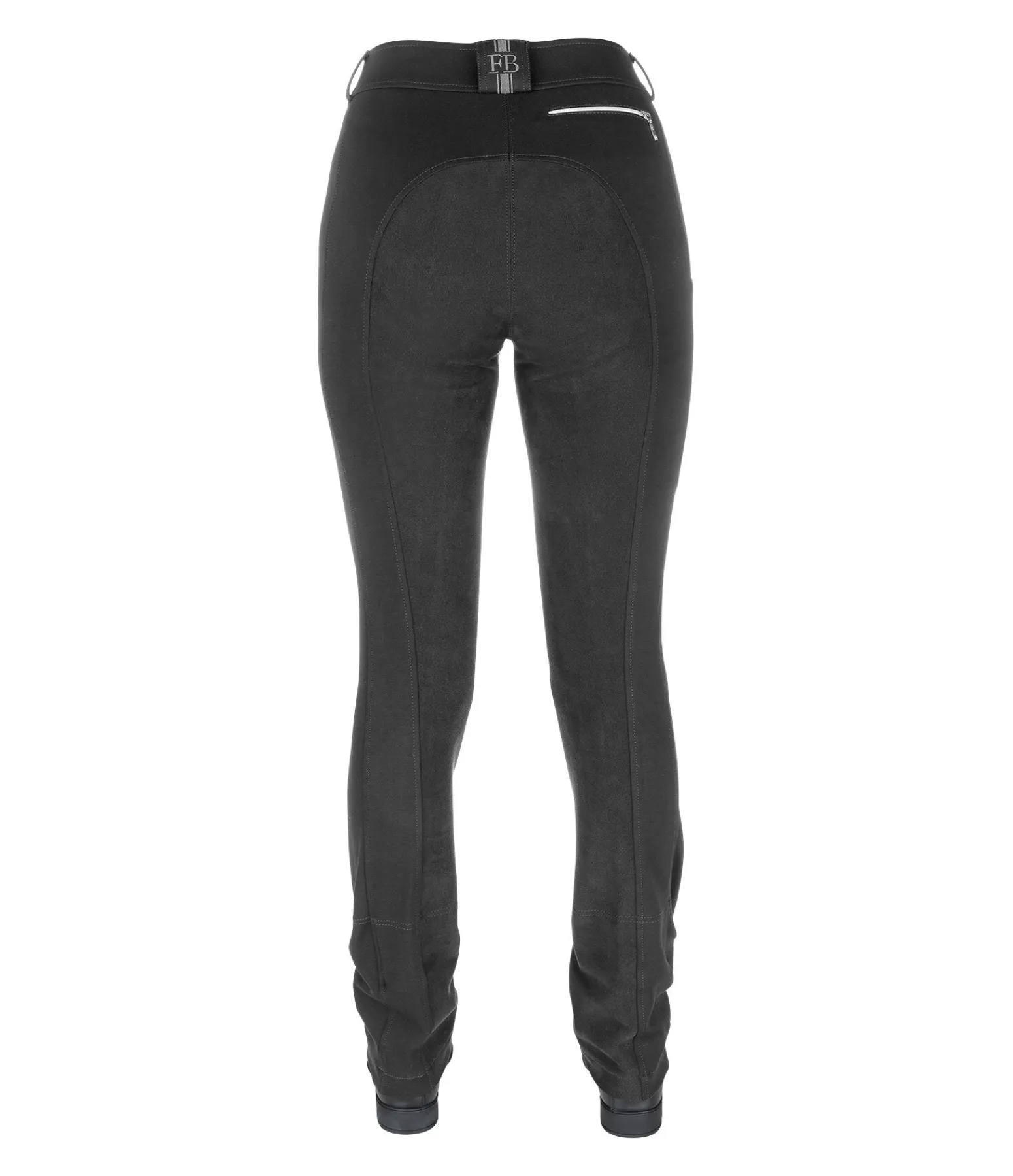 Pantalon d’équitation jodphur confortable. Fond intégral en synthétique. Large ceinture élastiquée avec deux boutons. Une poche zippée arrière et une poche pour téléphone portable sur la jambe. Broderie Felix Bühler à l’arrière. Bas de jambe évasé. Sous-pieds réglables. Matière très extensible et extrêmement douce. 68 % viscose, 27 % nylon, 5 % élasthanne.