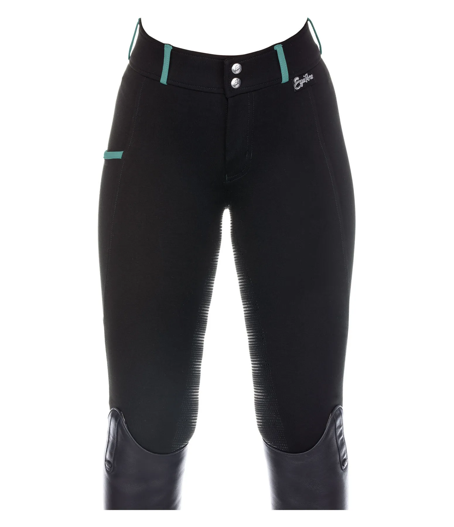 Magnifique pantalon d’équitation taille haute avec fond intégral en silicone. Matière respirante, extensible dans 4 directions. Bas de jambe extensible sans patte auto-agrippante. Poche latérale pour téléphone portable. Passants de ceinture au niveau de la taille. 68 % viscose, 27 % polyamide et 5 % élasthanne.