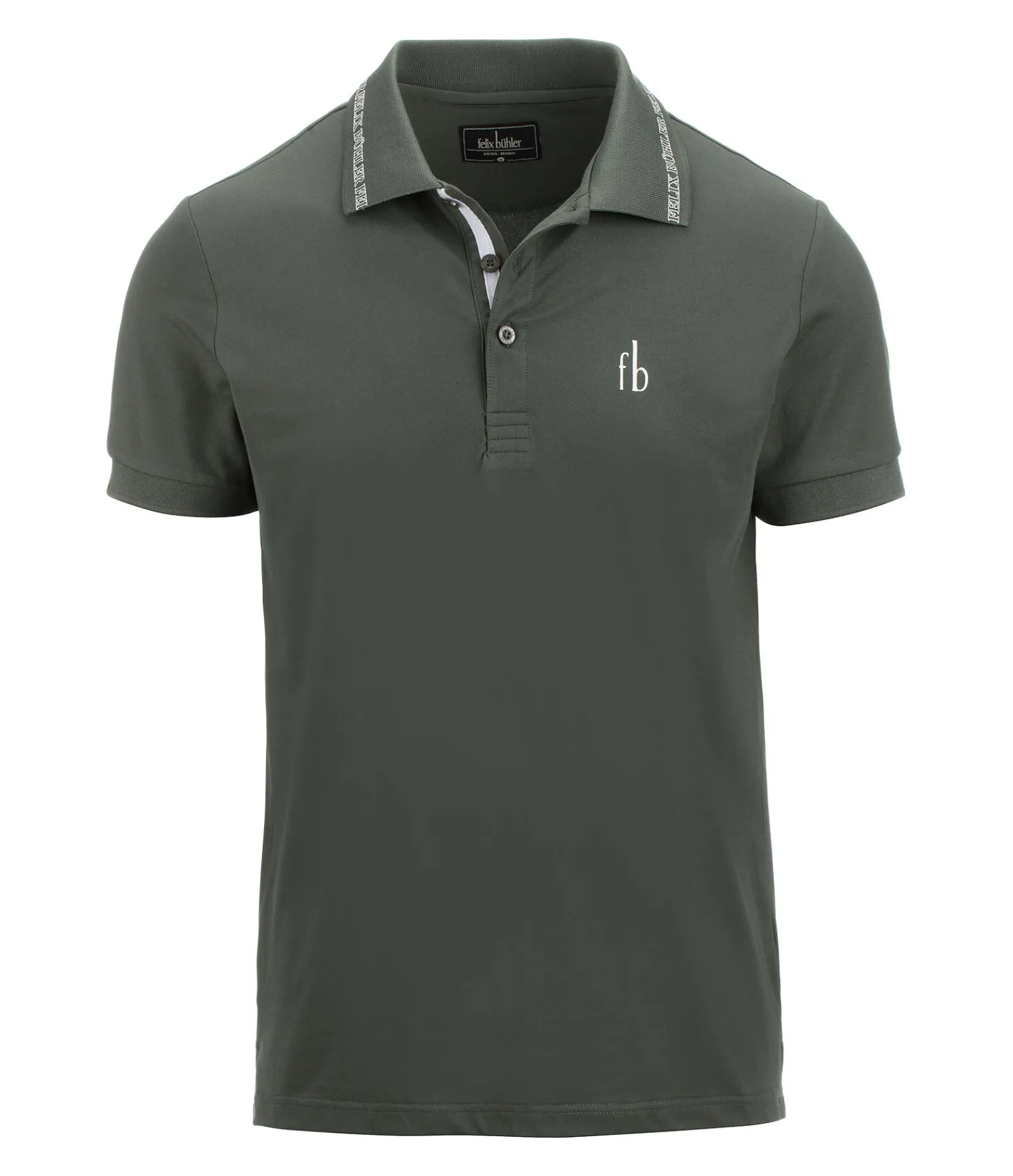 Polo à séchage rapide avec logo Felix Bühler sur la poitrine et inscription sur le col. 50 % polyester, 46 % coton, 4 % élasthanne.
