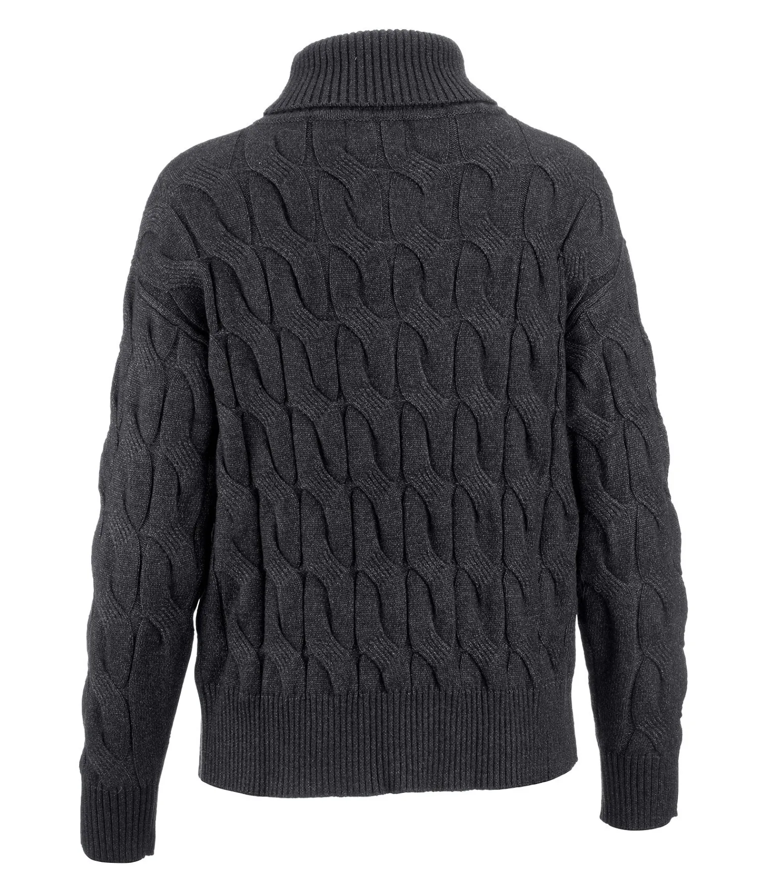 Pull-over à col roulé extrêmement doux et chaud en tricot torsadé. Bordure côtelée au col, en bas des manches et à la taille. 54 % polyacrylique, 28 % polyester, 18 % nylon.