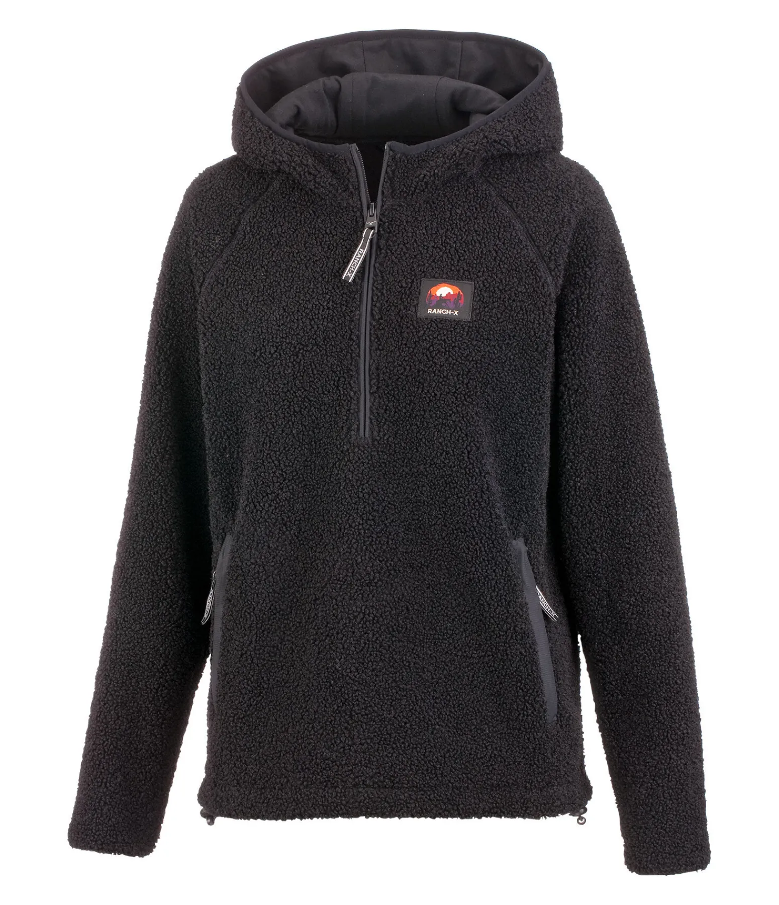 Sweat à capuche en sherpa. Matière chaude et respirante. Col zippé. 2 poches latérales zippées. Taille ajustable. Coupe-vent. 100 % polyester.